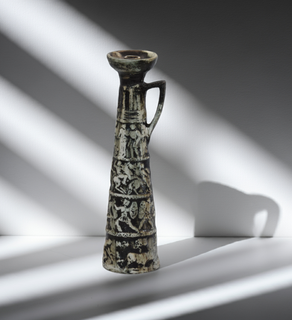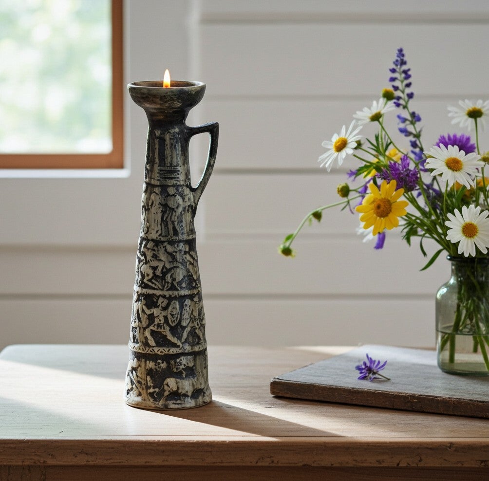 This rare ceramic candle holder is more than a decorative piece — it’s a slice of history, echoing the textures and tones of 19th-century Greek craftsmanship. Its handmade charm, subtle imperfections, and aged glaze speak to the beauty of a life well-lived.