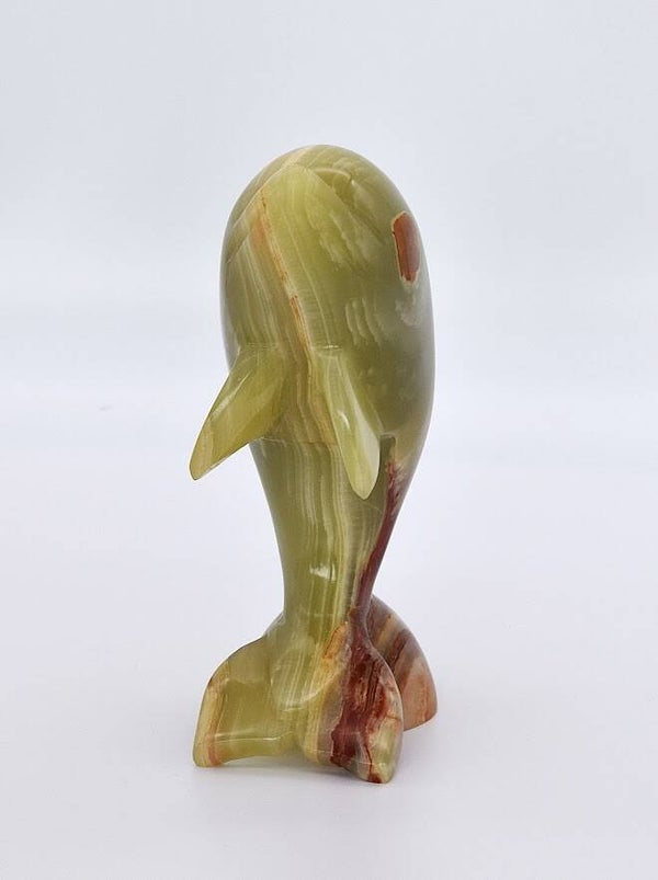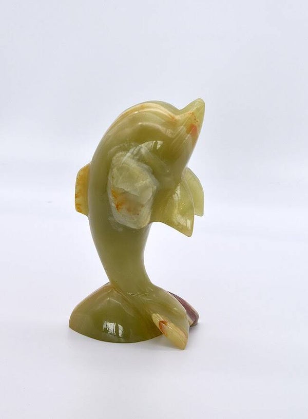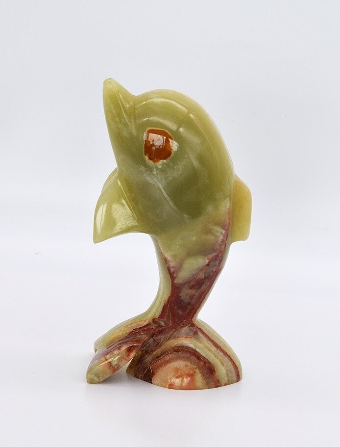 Add a splash of serenity and sophistication to your home with this beautifully crafted Vintage Dolphin Figurine, hand-carved from genuine onyx stone. With its fluid lines and soft natural tones, this piece celebrates both the grace of the dolphin and the organic beauty of stonework.