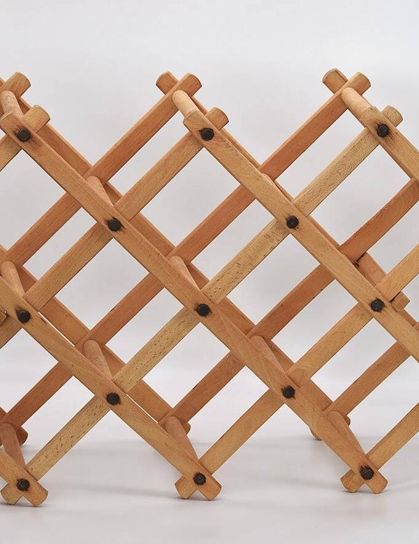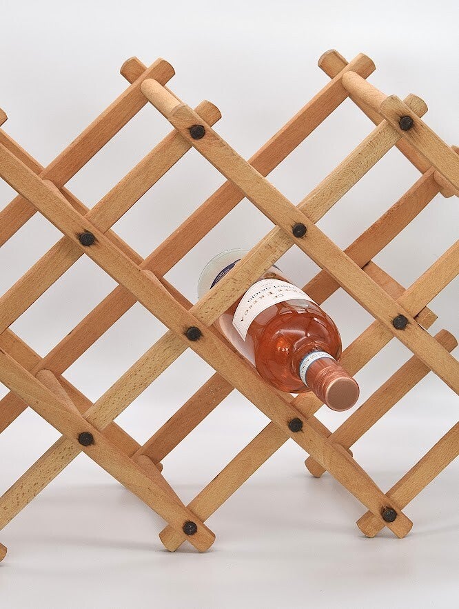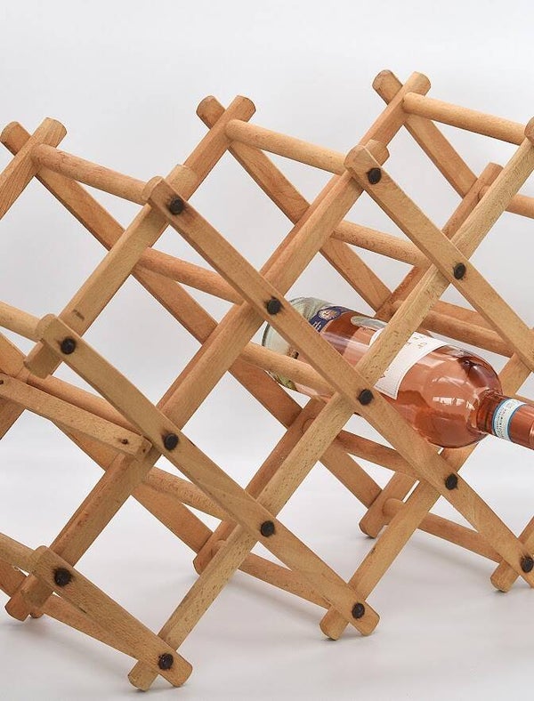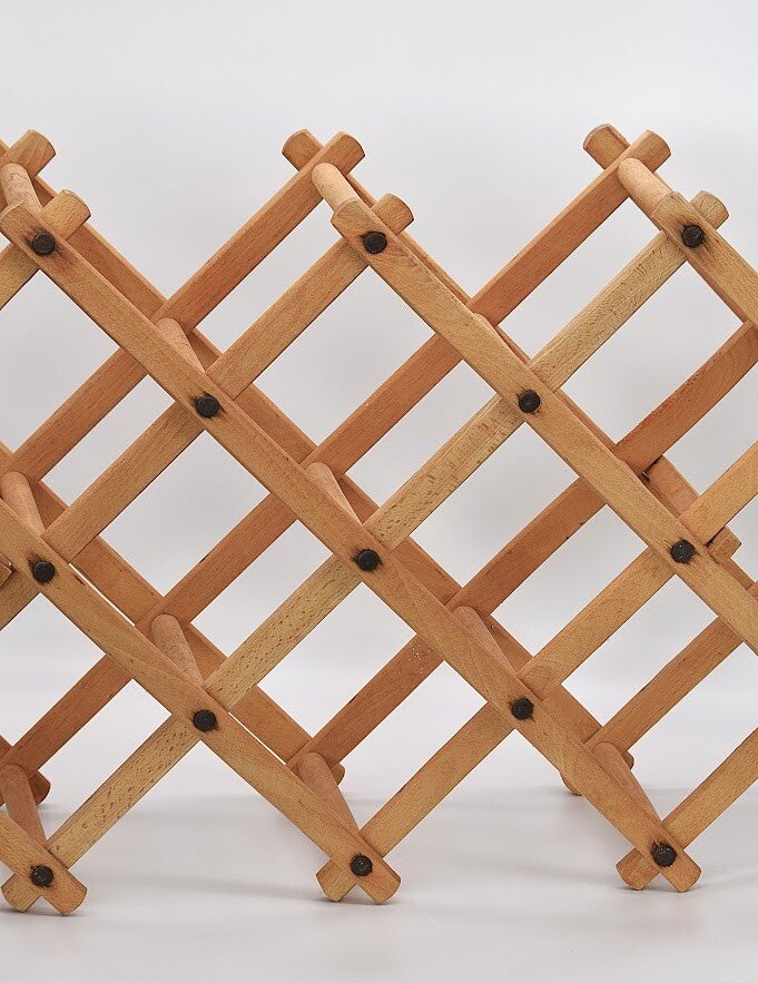 Bring vintage warmth and timeless function to your space with this Vintage Folding Wooden Wine Rack. Crafted from solid wood with a classic lattice design, this rack holds your favorite bottles in style while folding away effortlessly when not in use.