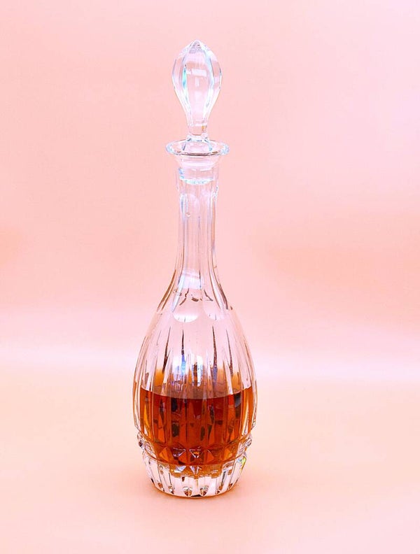 Vintage crystal whiskey decanter, luxury whiskey decanter, cut crystal liquor bottle, vintage barware, mid-century modern decanter, collectible crystal barware, TheyUnique vintage finds, elegant whiskey serving