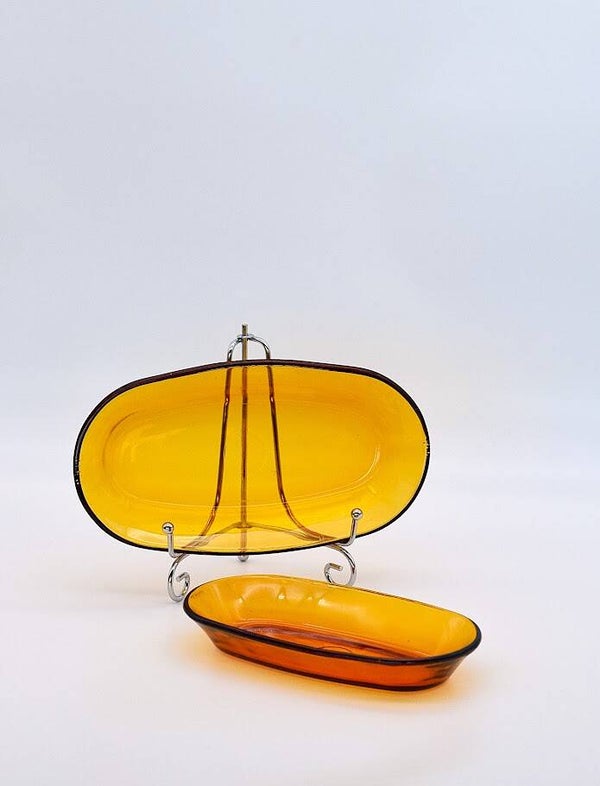 Bring warmth and retro elegance to your kitchen with this Set of 2 Vintage Duralex Bowls in Amber Glass. Made in France, these iconic bowls feature the distinctive honey-gold tone that made Duralex a staple of mid-century European design. Their sturdy tempered glass and timeless style make them both functional and collectible.