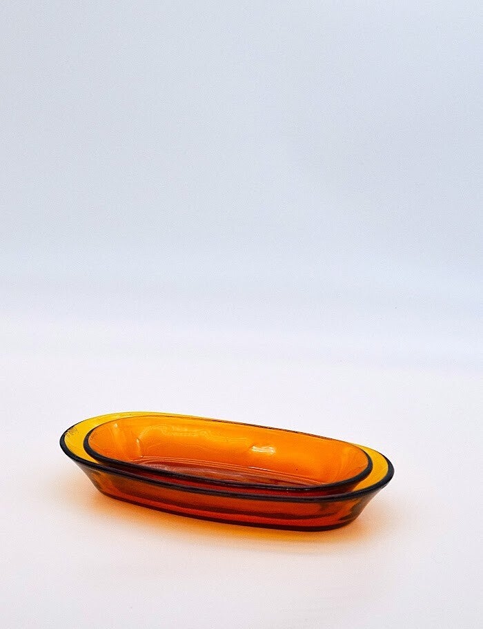 Set of 2 Vintage Duralex Bowls – Amber Glass – Iconic Mid-Century French Tableware