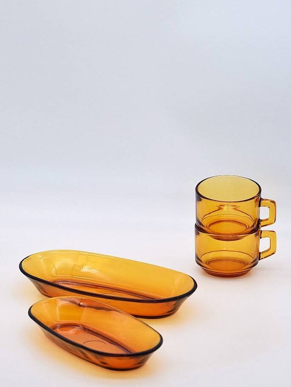 vintage Duralex bowls, amber glass bowls, mid century kitchenware, retro French tableware, Duralex France, vintage amber glass, boho kitchen decor, sustainable vintage home, collectible glassware, 1970s tableware