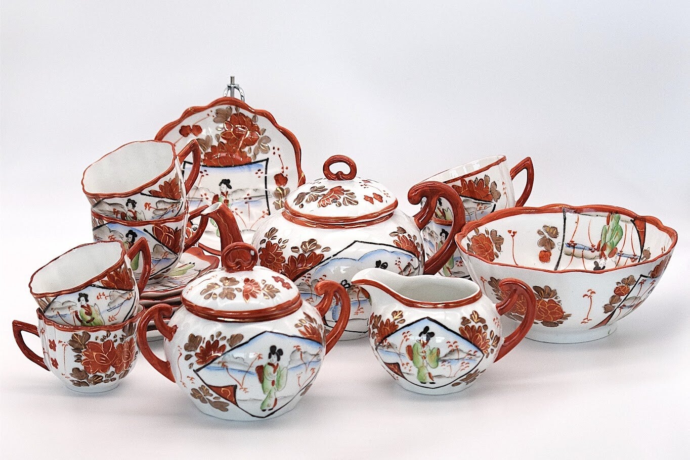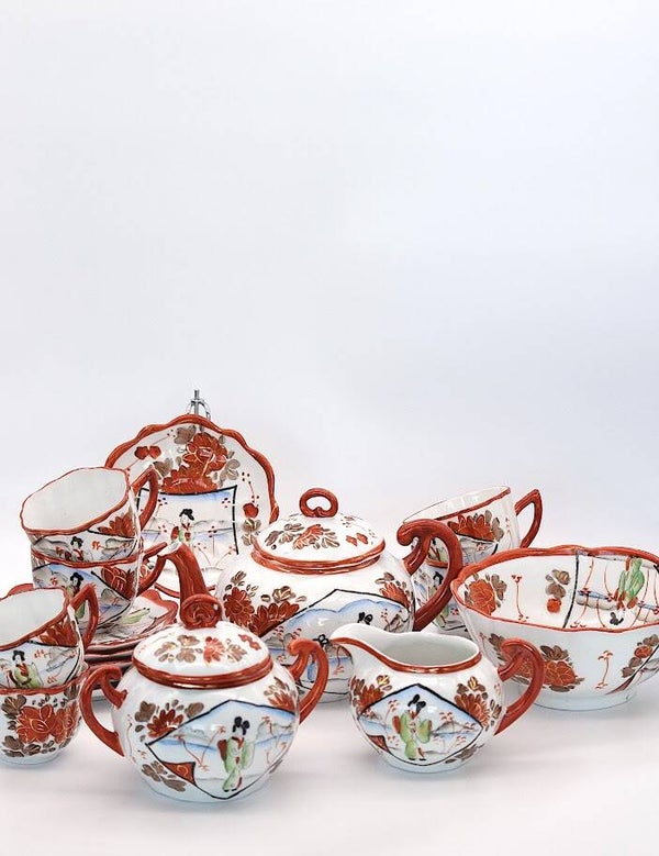 Japanese Kutani Tea Set – Hand-Painted 20th Century Porcelain – Traditional Collectible