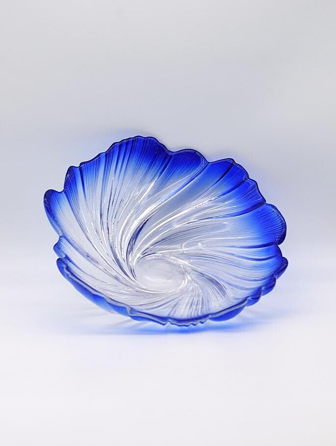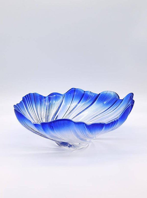 Bold, elegant, and unmistakably artistic — this mid-century modern glass bowl is a true sculptural statement. Crafted in striking blue and transparent glass, its fluid form evokes the elegance of blown-glass artistry, while the minimalist silhouette and biomorphic curves make it ideal for a modern interior.