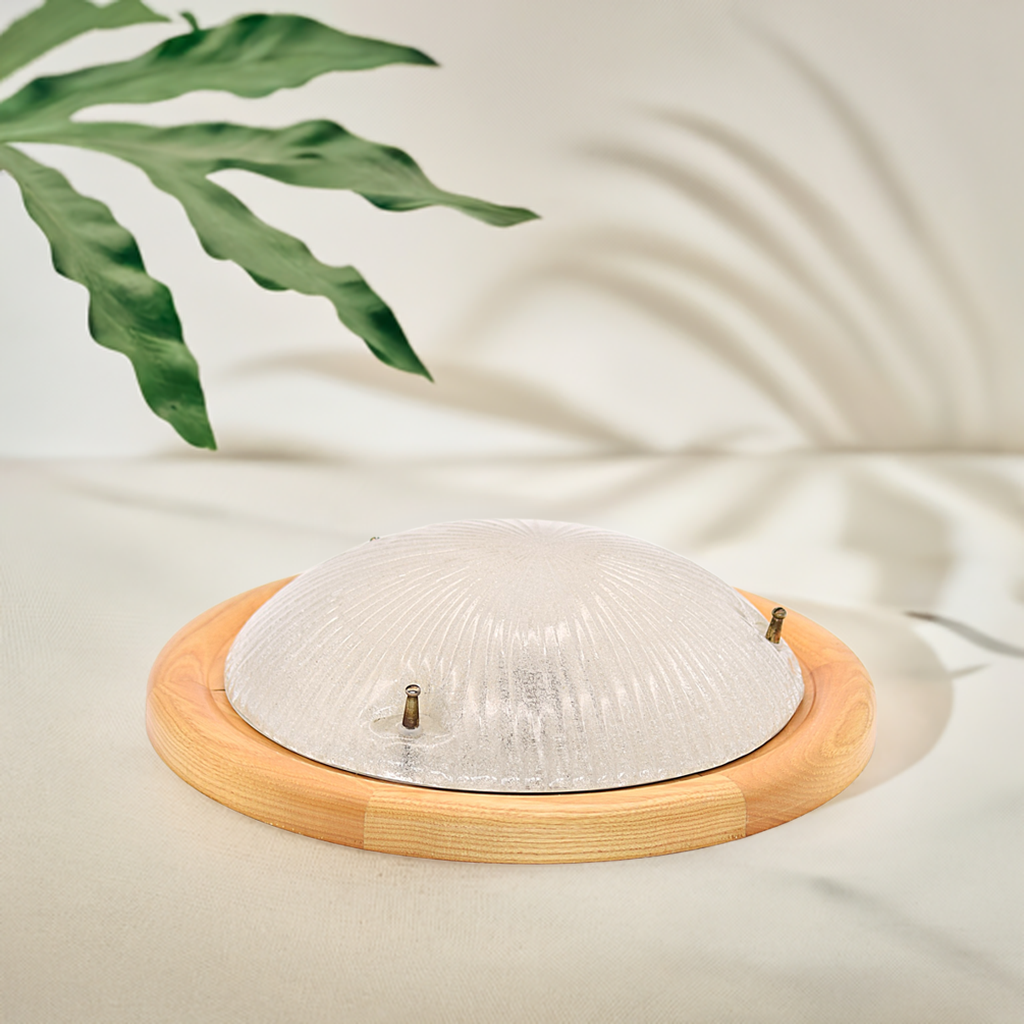 Italian Hand Blown Ice Glass Ceiling Lamp – Frozen Elegance in Mid-Century Design