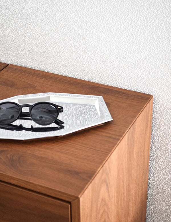 Whether used for serving or styling, this chrome tray is a simple yet stunning way to elevate your interior.