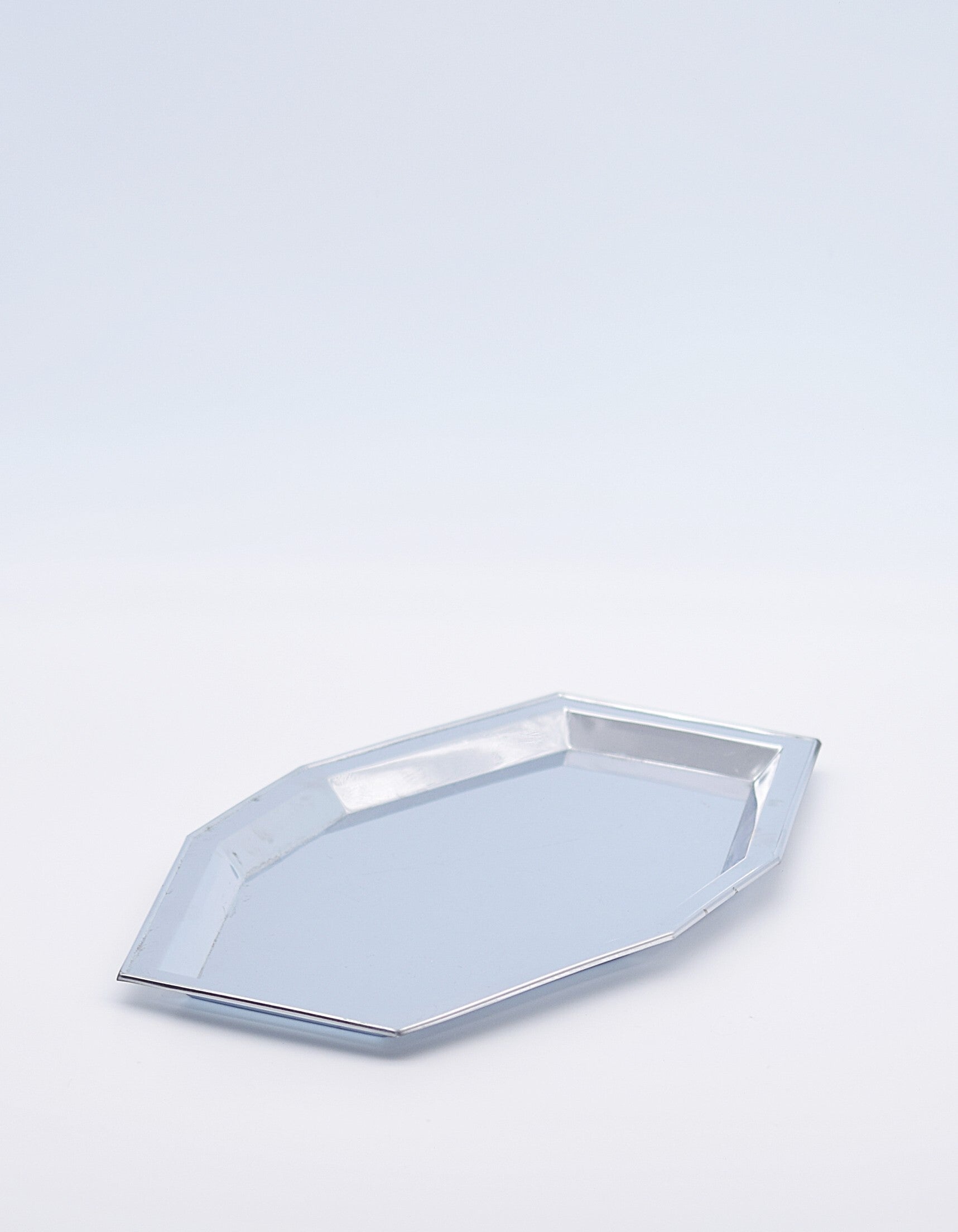 Add a touch of retro charm and metallic sophistication to your home with this Vintage Chrome Silver Small Serving Tray. With its sleek minimalist silhouette and radiant silver finish, this piece is perfect for serving drinks, organizing perfumes or jewelry, or simply as a decorative base on your coffee table or sideboard.