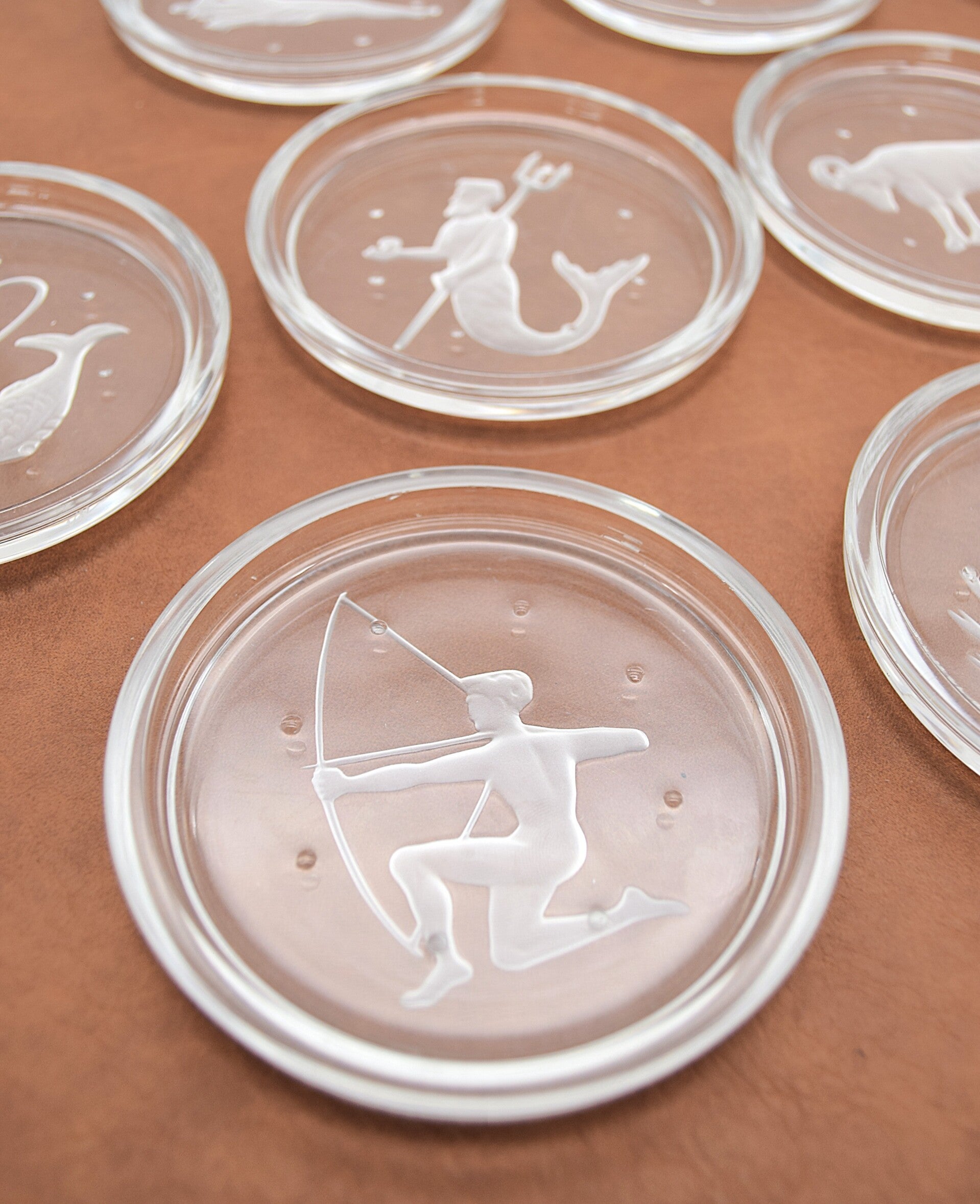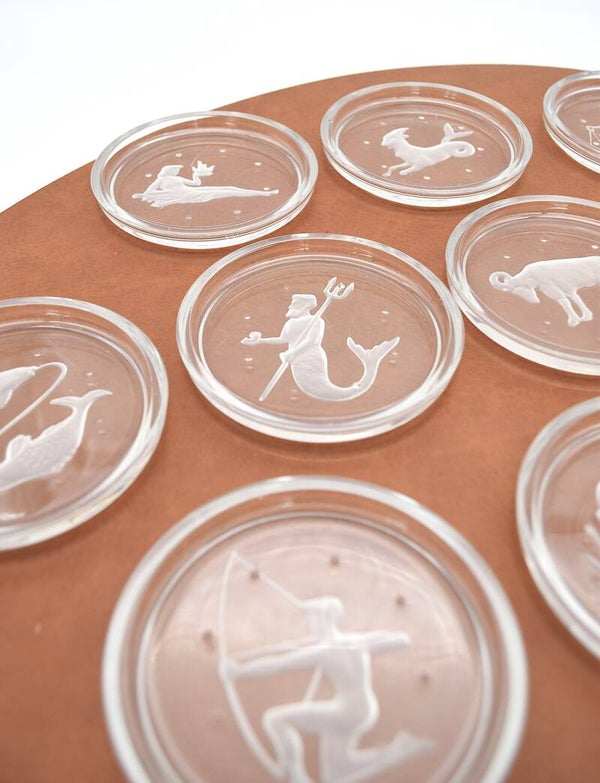 Val Saint Lambert Signed with initials Zodiac Crystal Coasters – Set of 9
