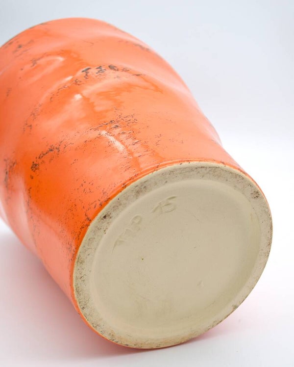 Add a bold touch of retro charm to your home with this vintage orange planter from West Germany, made in the 1970s. This mid-century ceramic beauty is a statement piece, with its vivid glaze and iconic West German form—a true reflection of timeless European design.