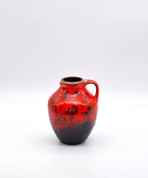 Add bold retro character to your interior with this striking Carstens Tönnieshof vase, a 1970s West German design classic. Model 244-15 features a dramatic red and black glaze with rich texture and depth, capturing the spirit of the Fat Lava movement in a more refined modernist form.