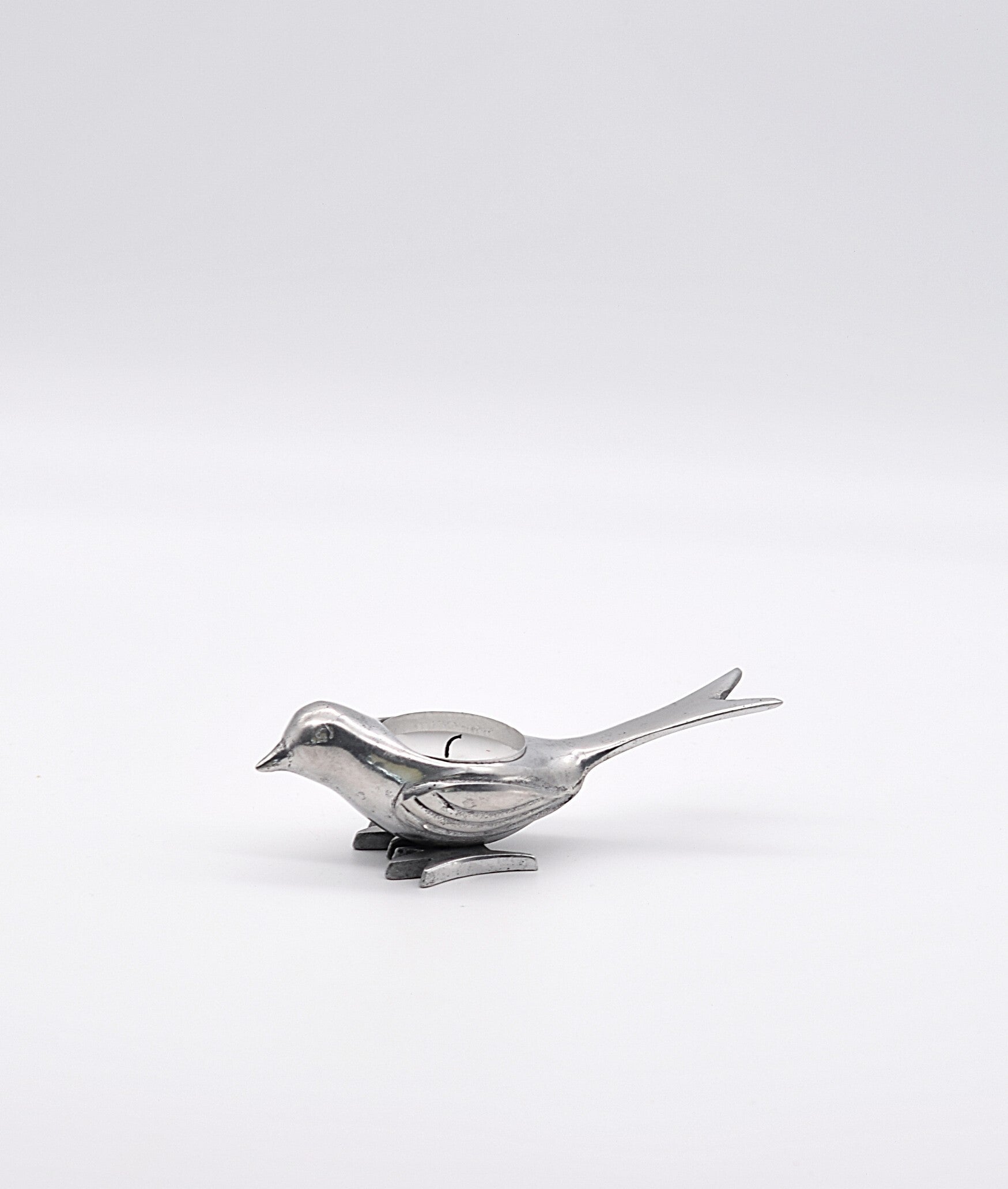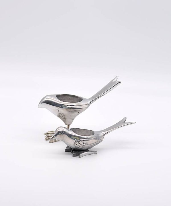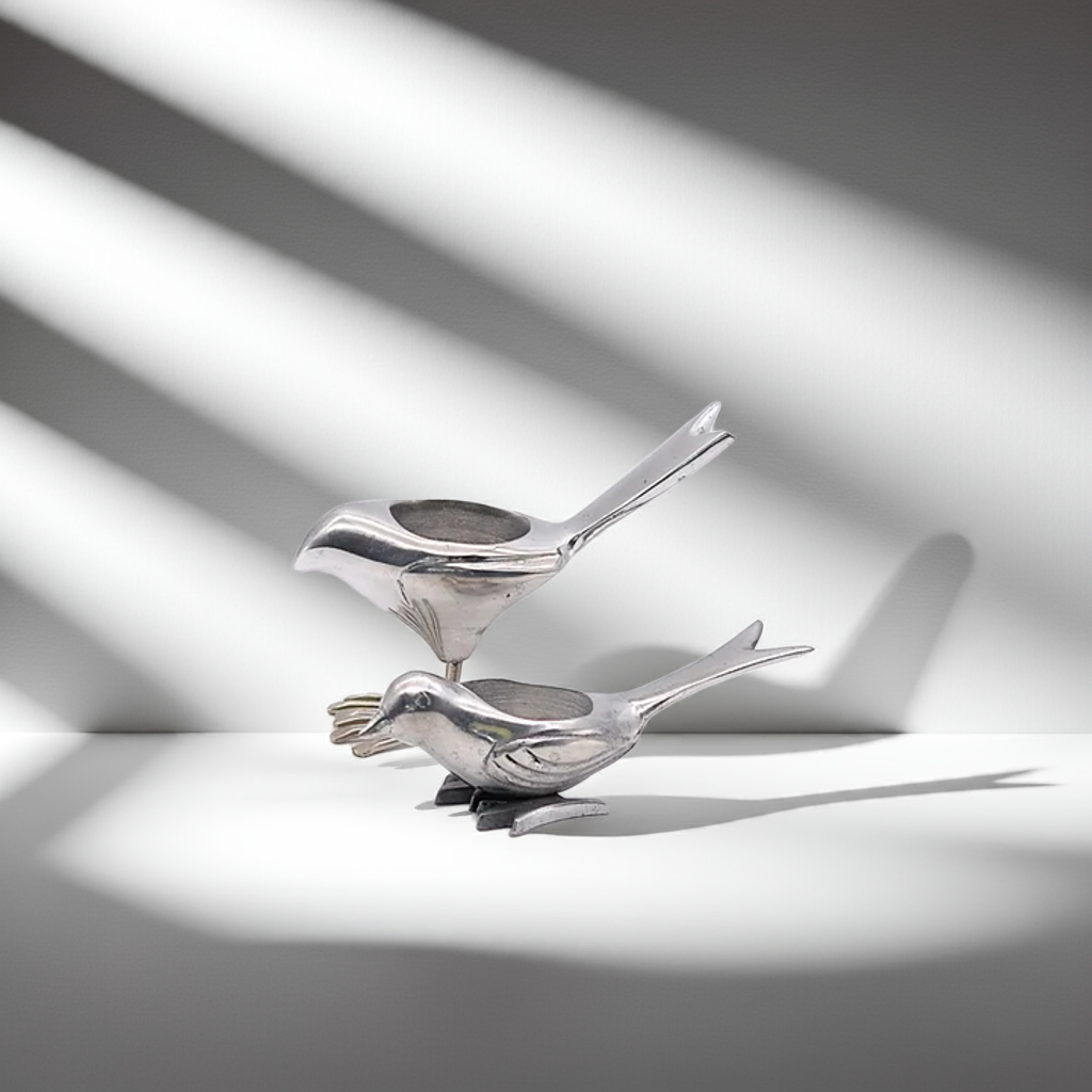 Vintage Chrome Bird Tealight Holder – Sleek & Sculptural Metal Decor
