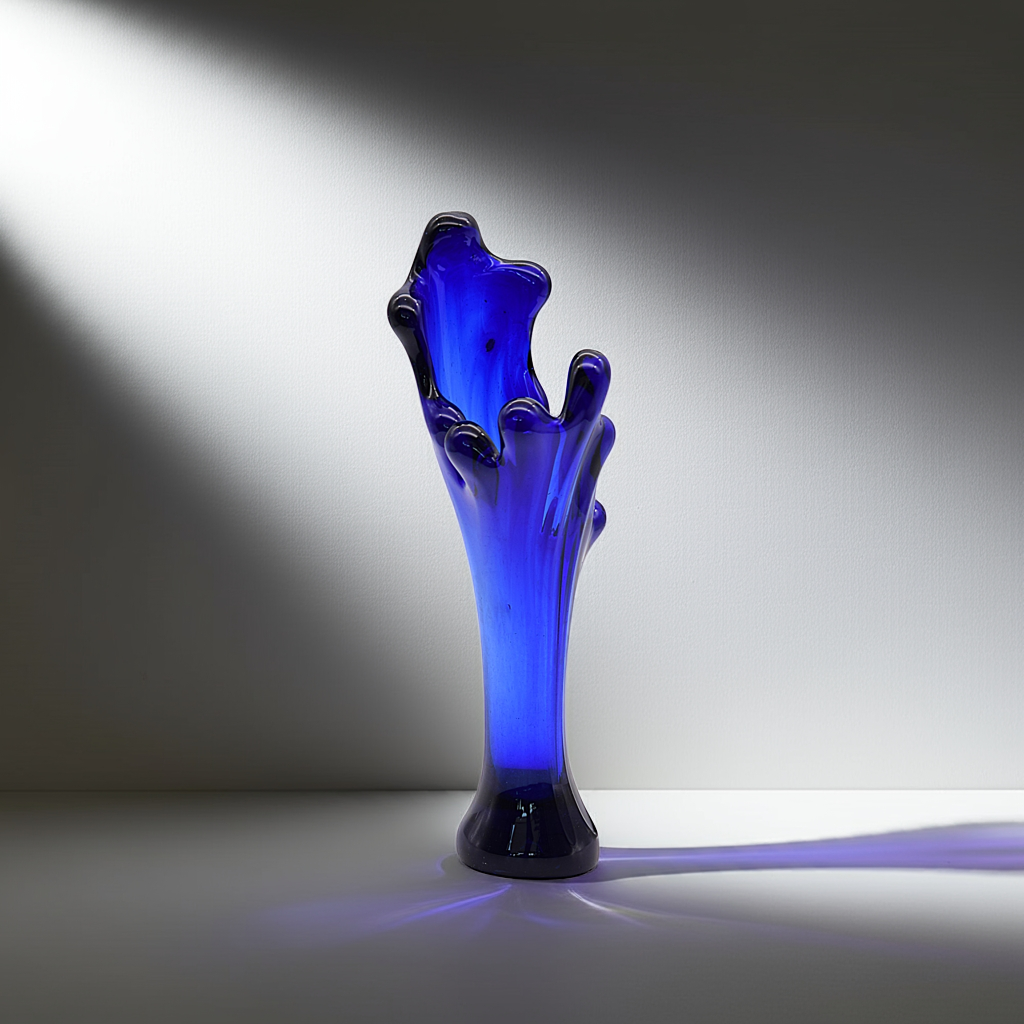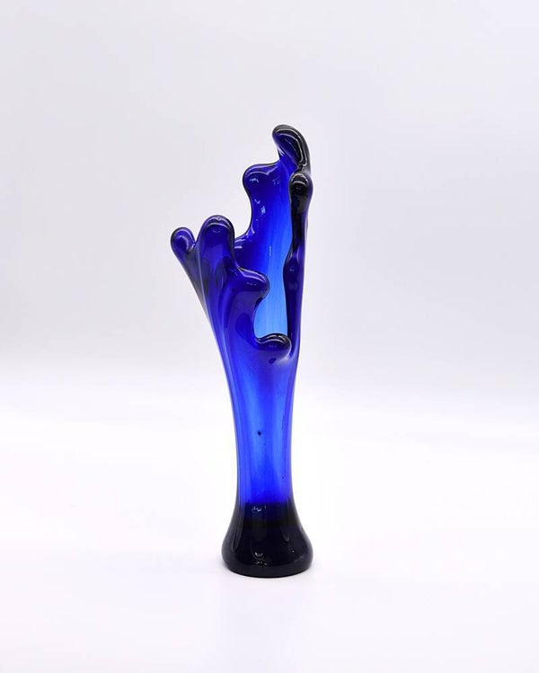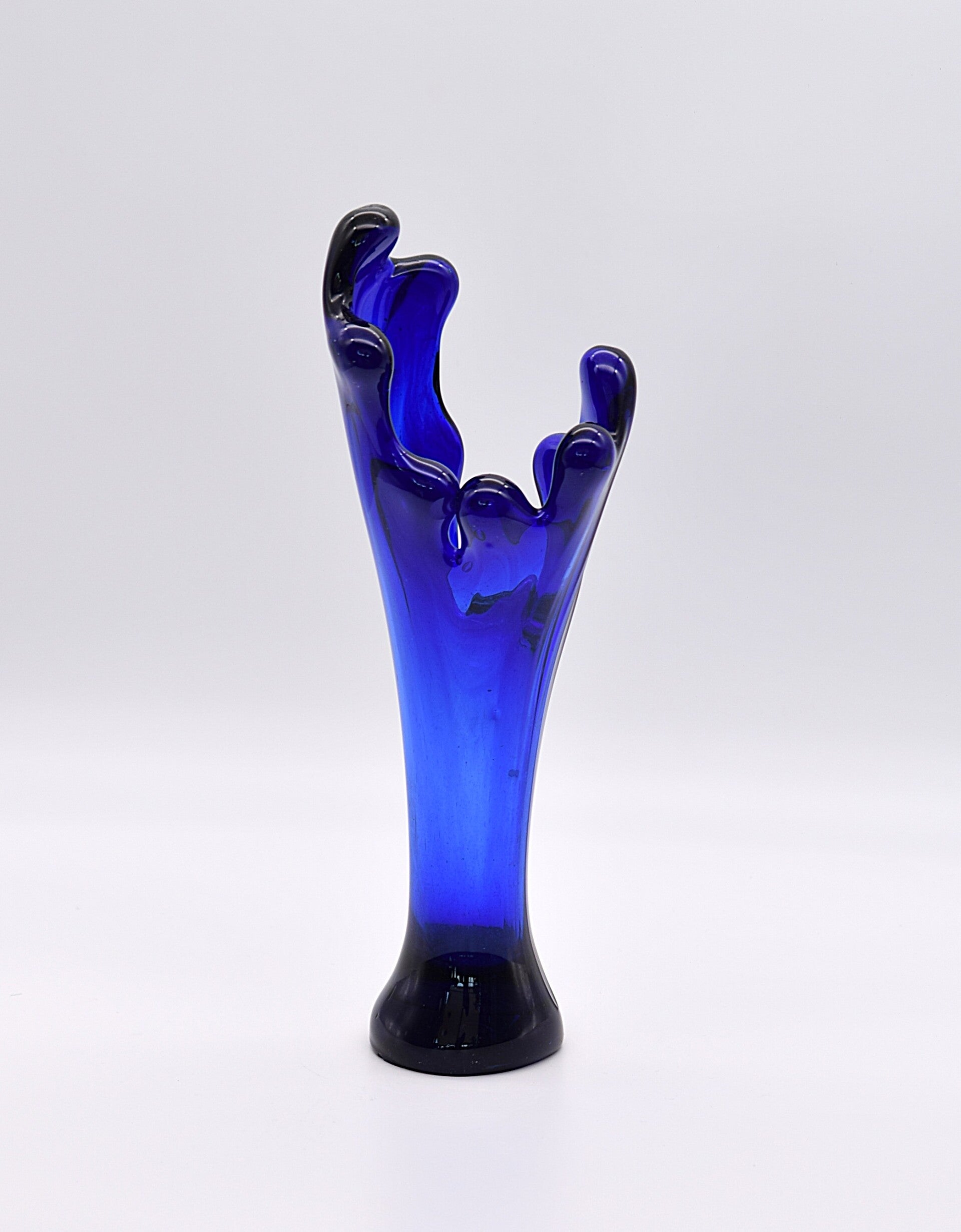 Mid-Century Modern Swung Unique Vase – Cobalt Blue Fingers Art Glass – Sculptural Elegance - 10 Fingers!