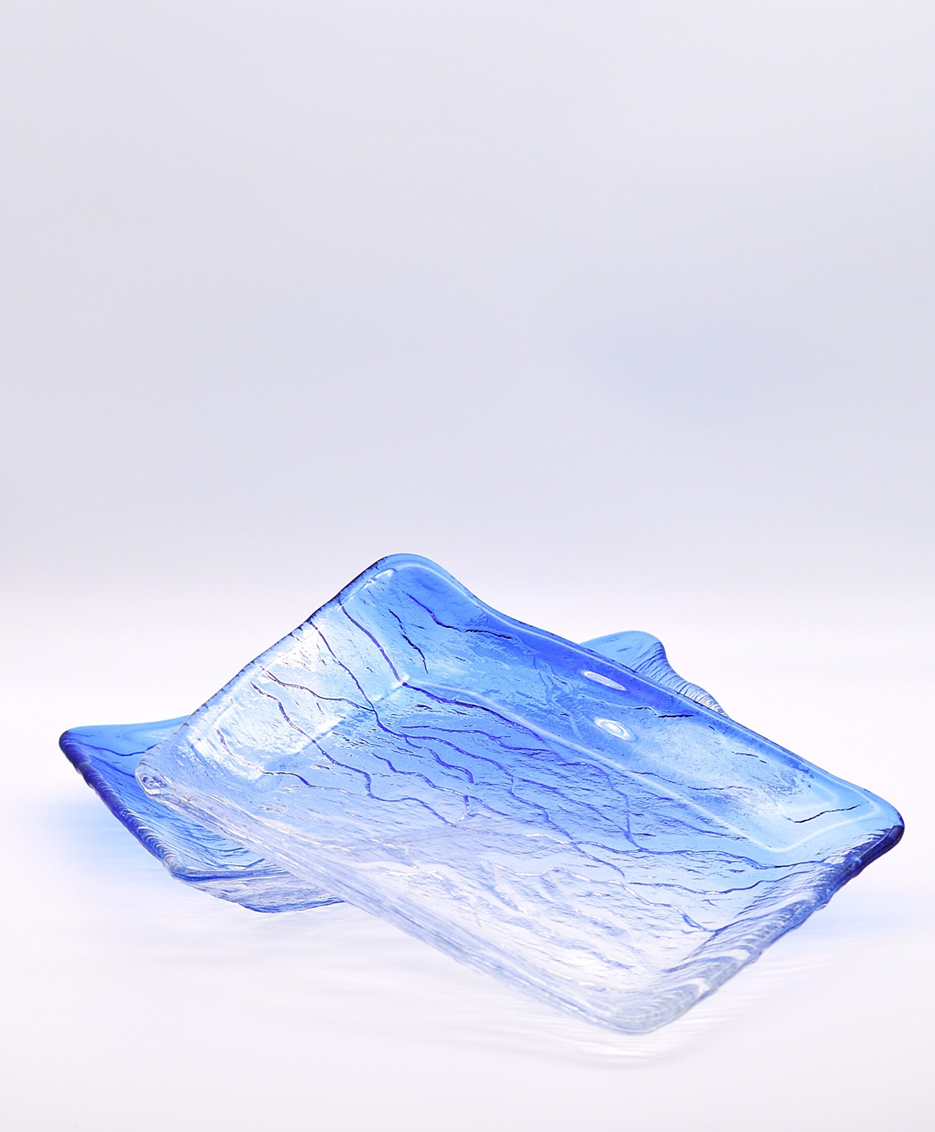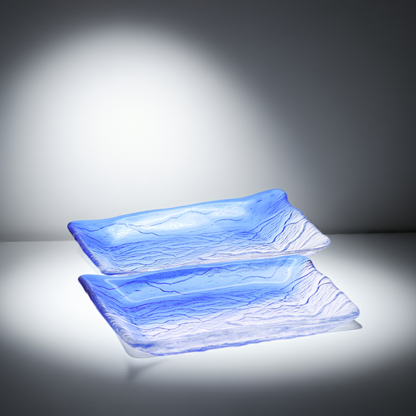 Bring timeless elegance and a splash of coastal charm to your table with this vintage ocean blue glass serving plate. The piece features a rich marine-blue hue and a beautiful textured surface that catches the light from every angle.
