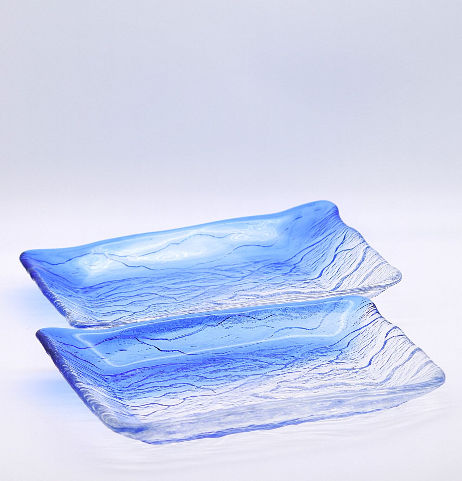 Vintage Ocean Blue Textured Glass Serving Plate – Retro Coastal Elegance