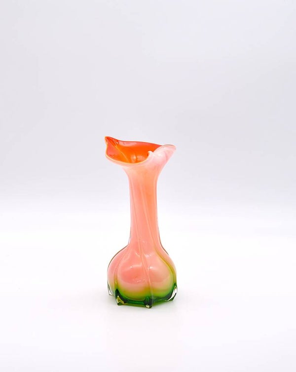 A stunning example of Murano glass craftsmanship, this mid-century modern vase brings timeless elegance and artistic flair. Its sculptural rim, shaped like a flower or heart, adds a soft and romantic silhouette, while the rich, hand-blown colors embody the classic beauty of Italian art glass from the 1950s–70s.