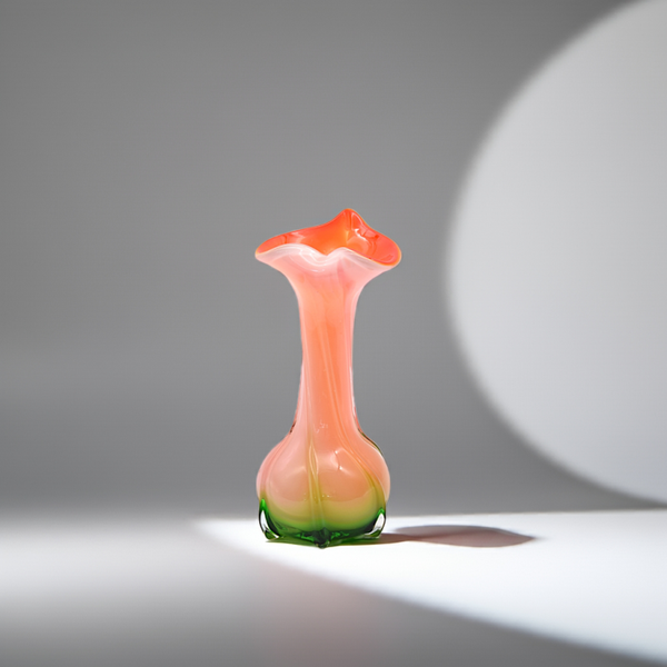 Murano Mid-Century Modern Art Glass Vase – Italian Blown Glass with Heart/Flower Shaped Rim