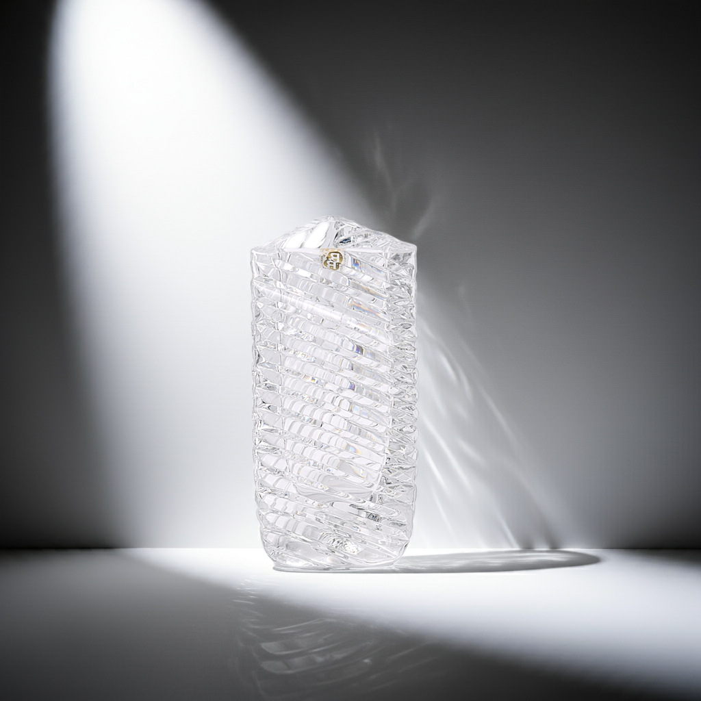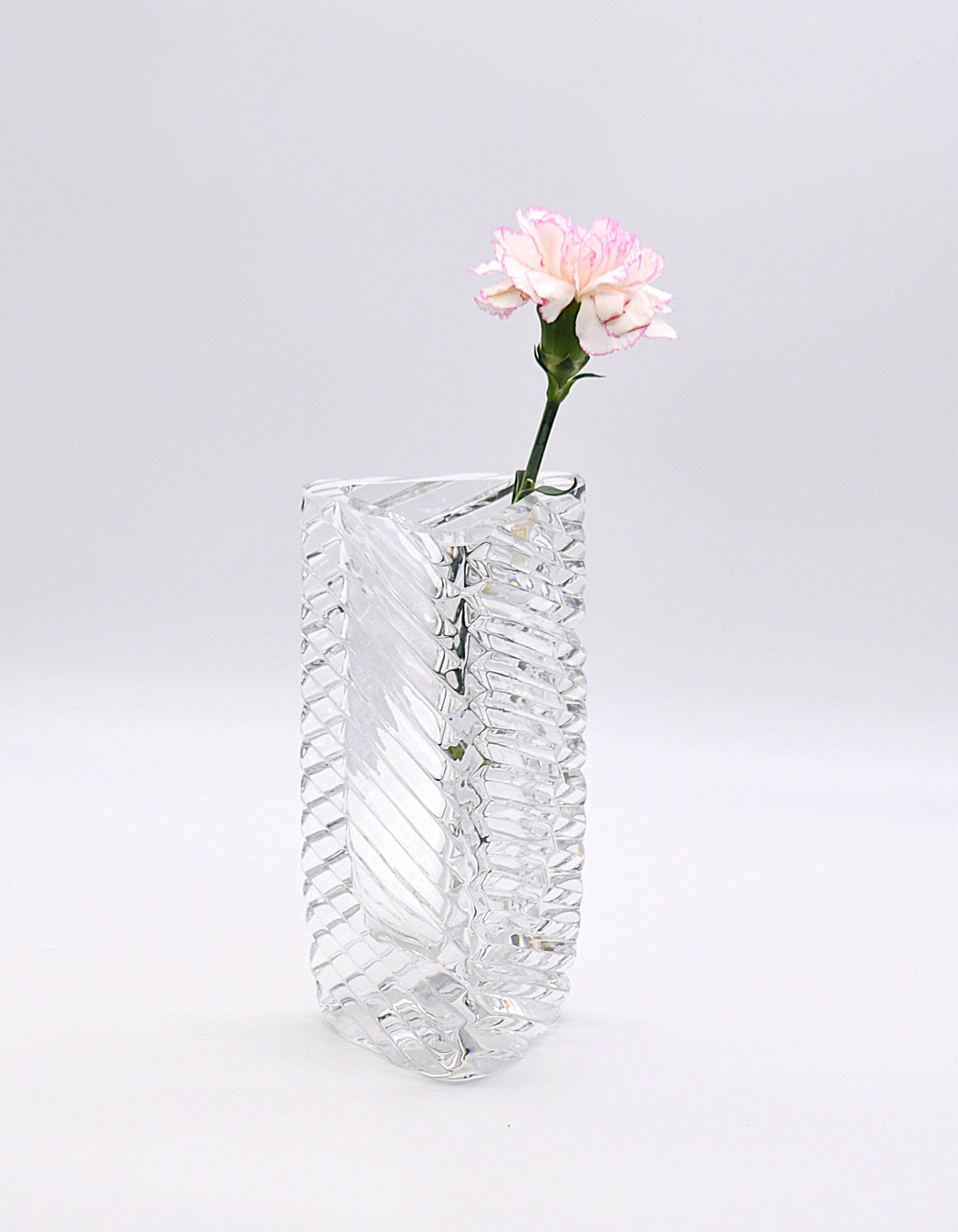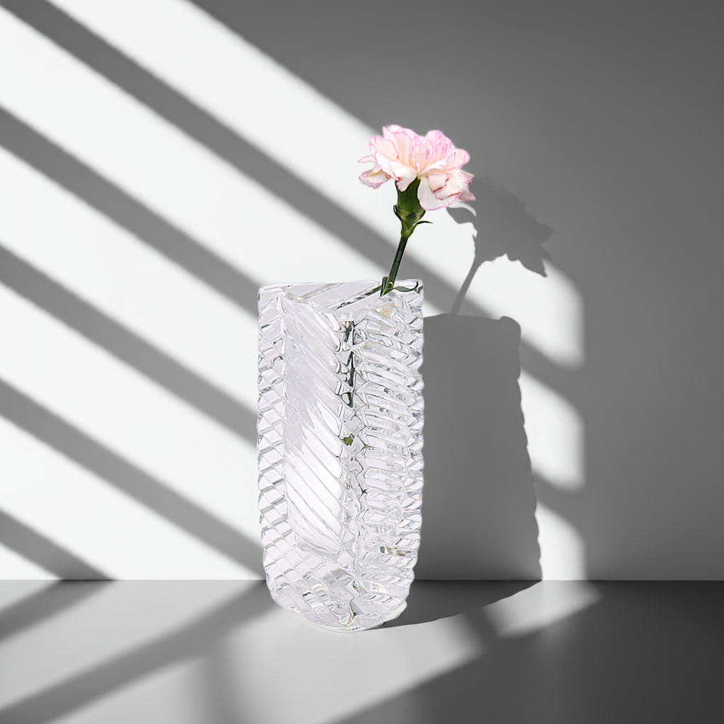 Ideal for floral arrangements or as a sculptural glass object, the vase plays with light beautifully, especially under natural or LED illumination.