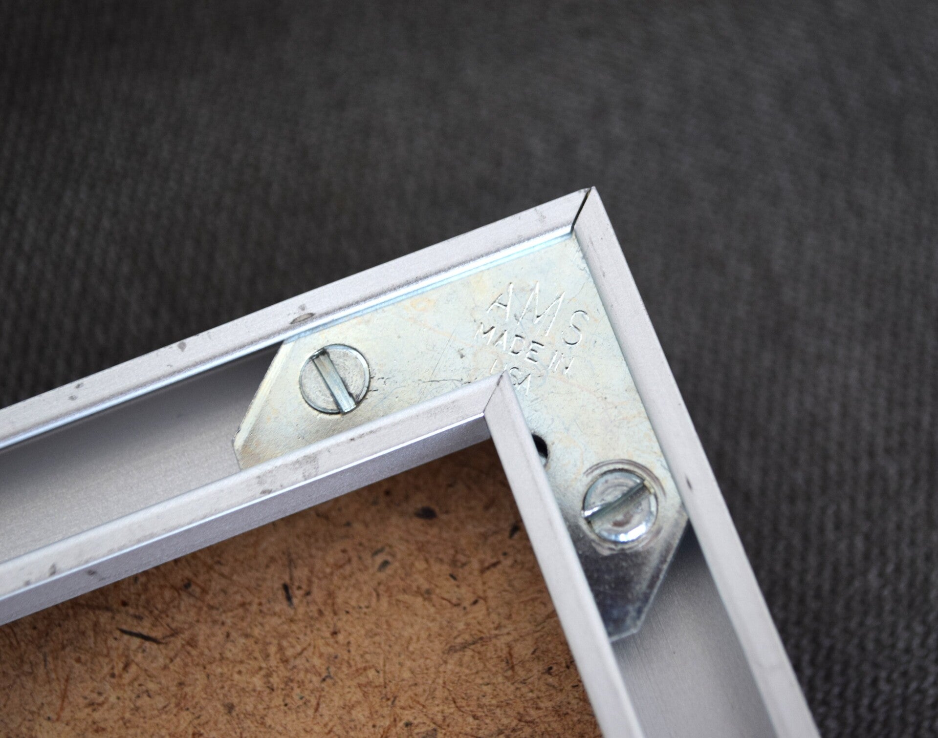 Add a striking piece of modernist history to your interior with this vintage reproduction of Wassily Kandinsky’s “Sans Titre” (1923), beautifully framed in an original aluminum vintage frame. This piece is not just an art print — it’s a carefully preserved reproduction from decades past, complete with producer information on the back.