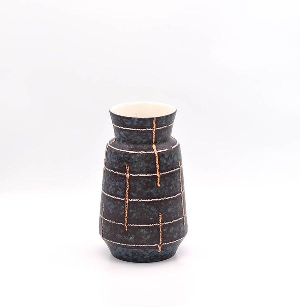 Finished in a rich, volcanic-style glaze, this vintage vase combines earthy tones with dramatic contrast, making it both a functional object and a sculptural artwork. The model number 9072/20 indicates its original design and 20 cm height, and the base is clearly marked “W. Germany.”