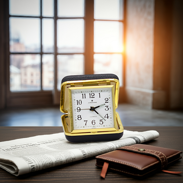 Junghans, a brand synonymous with precision German watchmaking, blends function and form in this beautifully preserved portable piece. The warm brass accents, clean retro dial, and smooth mechanical movement capture the spirit of post-war modernism—efficient, elegant, and quietly sophisticated.