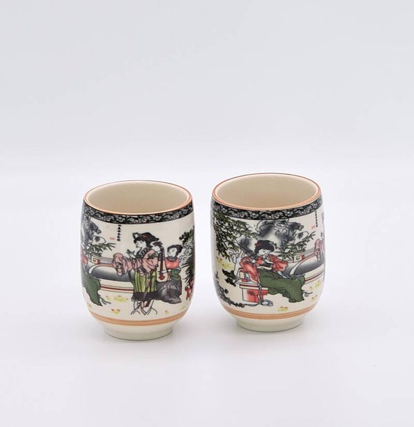 Vintage Asian Tea Cups – Set of 2 – Geisha Motif Porcelain