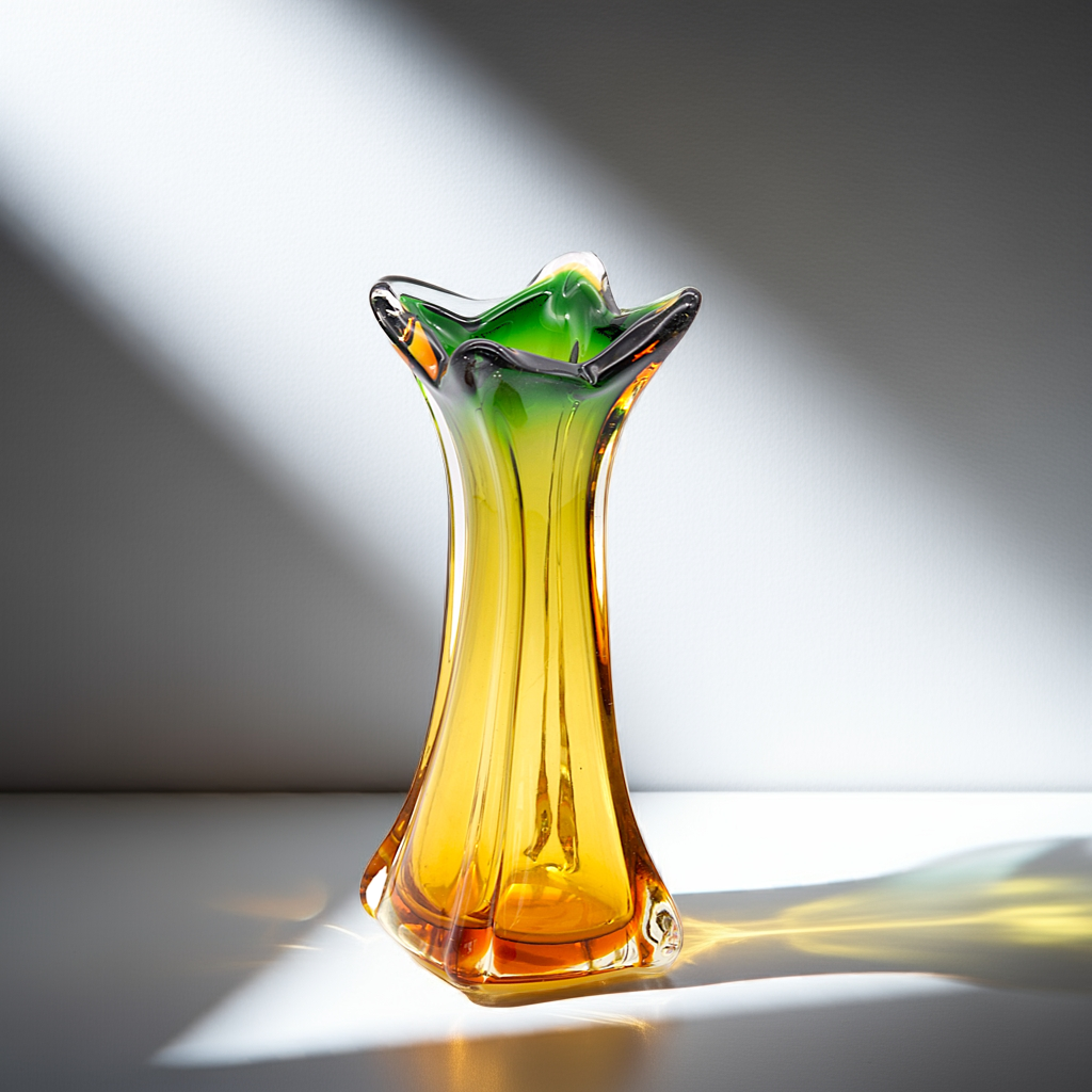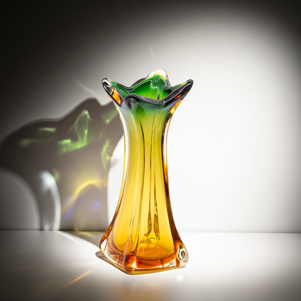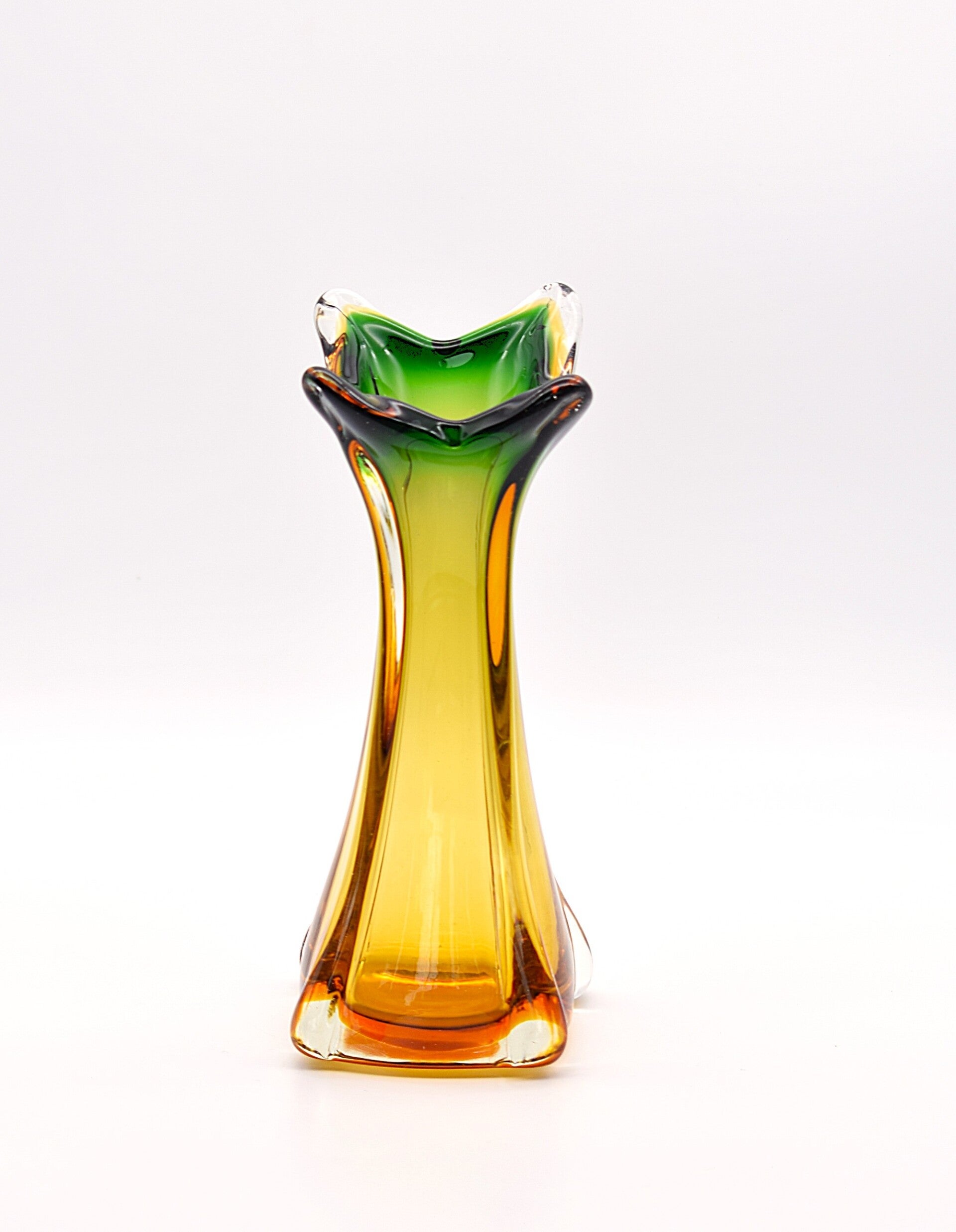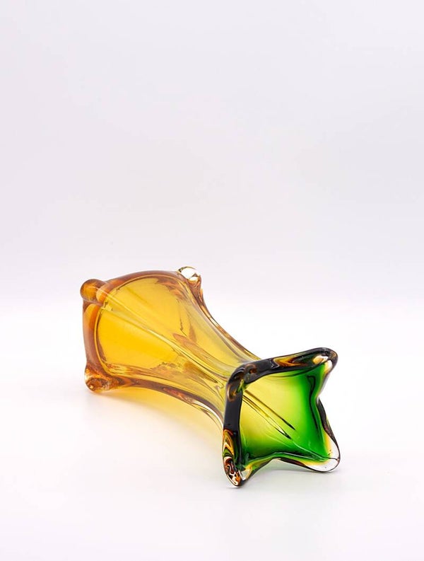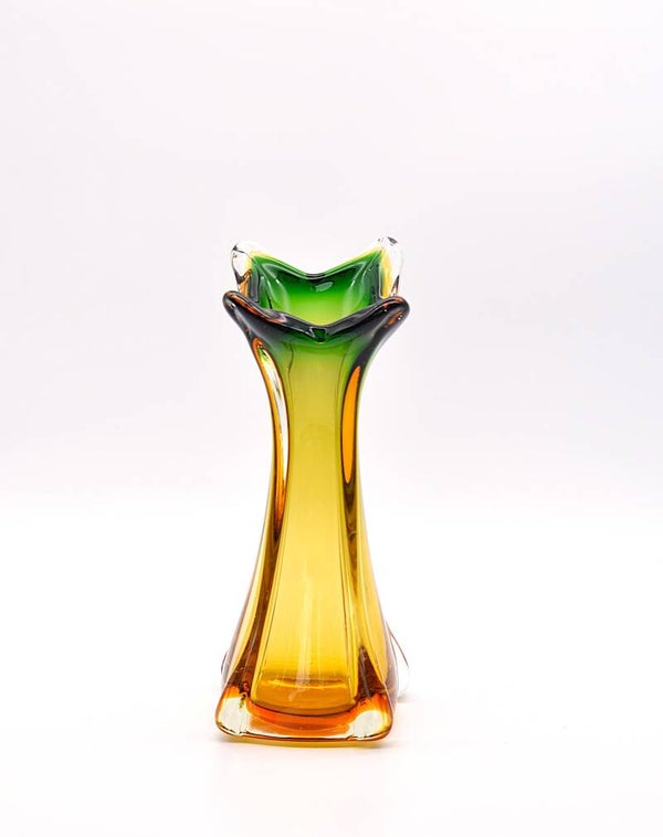 Mid-Century Murano Green & Amber Twisted Glass Vase – Italian 1960s Art Glass