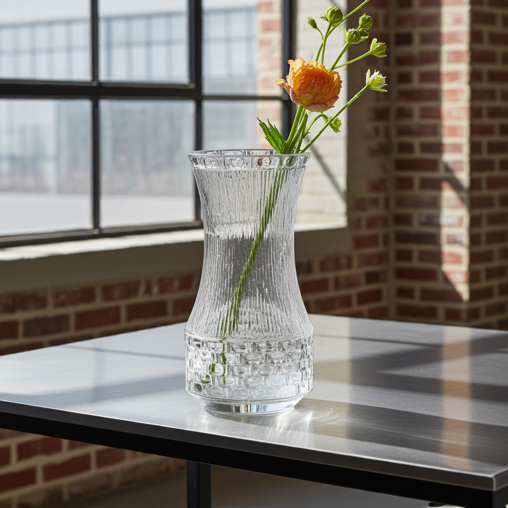 1960s Mid-Century Modern Patterned Pressed Glass Vase – Vintage Decorative Design