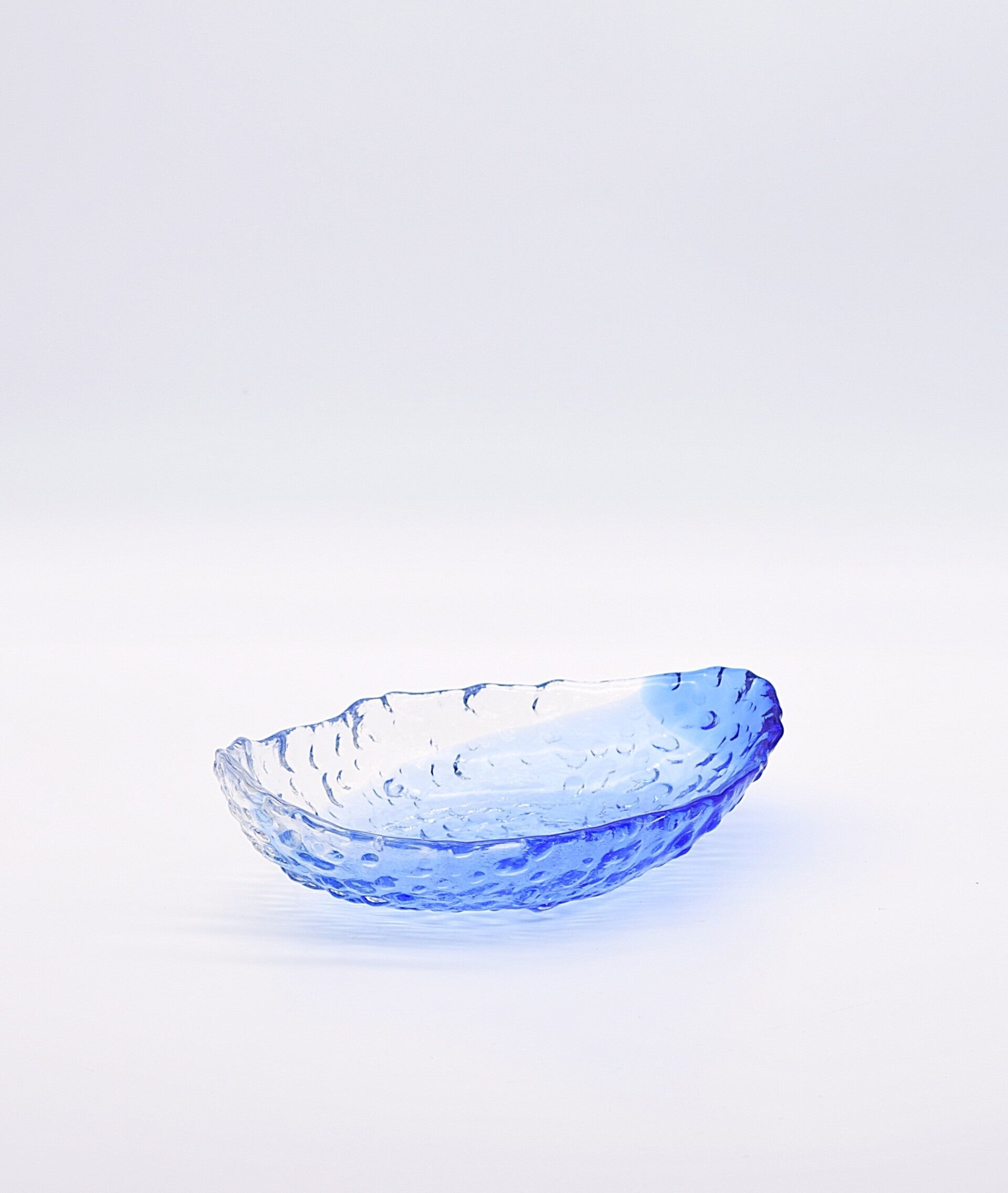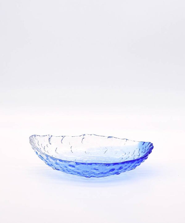 Mid Century Modern Glass Ice Serving Bowl – Blue & Clear Glass