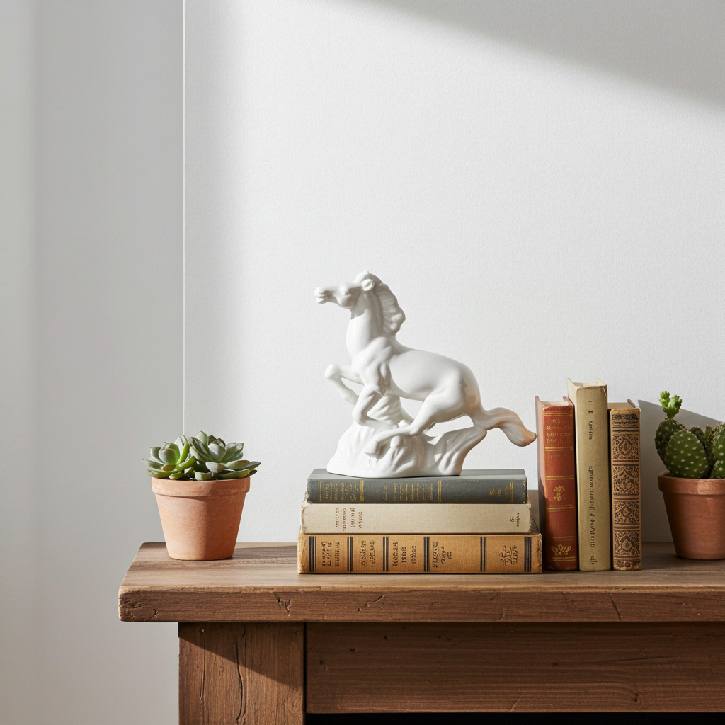 🐎 On a bookshelf or mantel: Display alongside neutral ceramics or vintage books for a refined, curated feel.