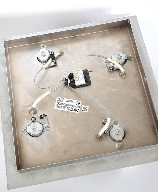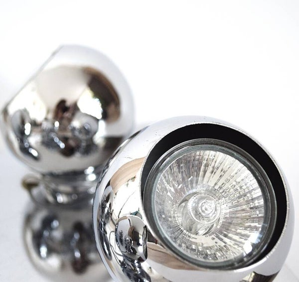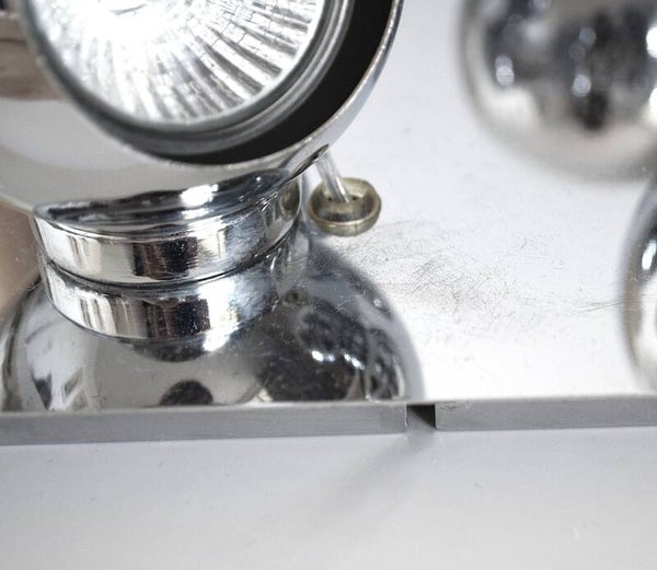 Add a touch of retro sophistication to your space with this Vintage “Brilliant” Chrome Metal 4-Eyeball Ceiling Spotlight — a collectible piece of mid-century lighting design.