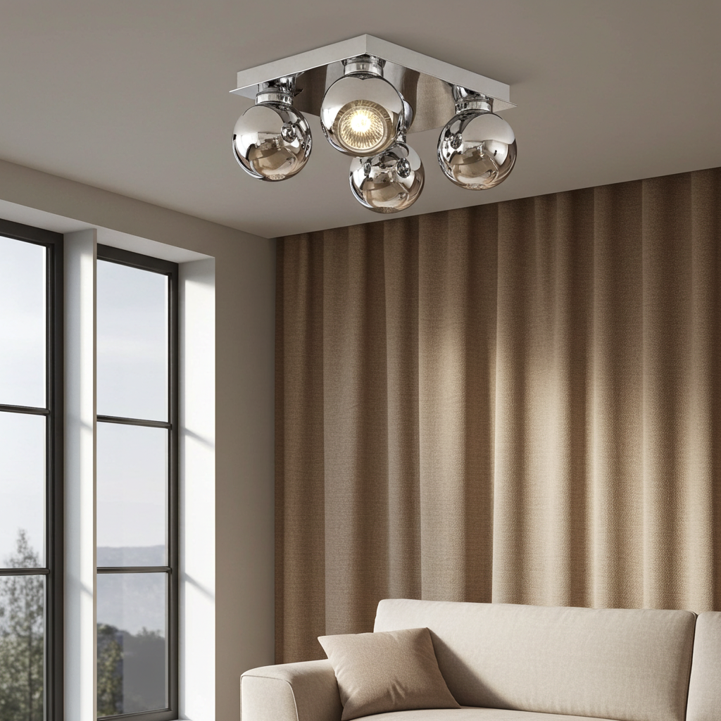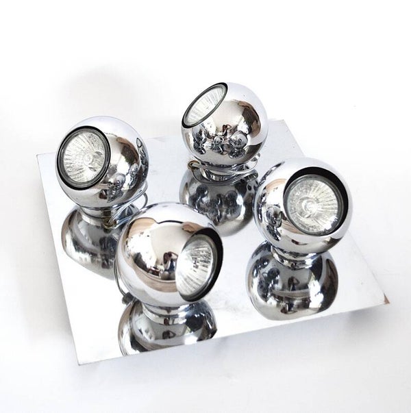 Vintage “Brilliant” Chrome 4-Eyeball Ceiling Spotlight – Adjustable Retro Lighting