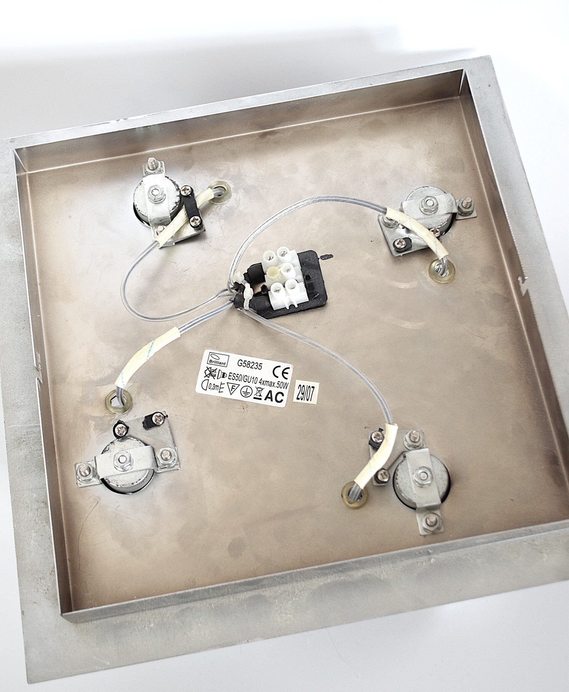 Crafted by Brilliant, model G58235, this lamp features four adjustable ES50/GU10 spotlight heads mounted on a sleek chrome plate, allowing you to direct light exactly where you need it. Perfect for creating focused illumination in living rooms, kitchens, or studios, while keeping a distinctive vintage aesthetic.