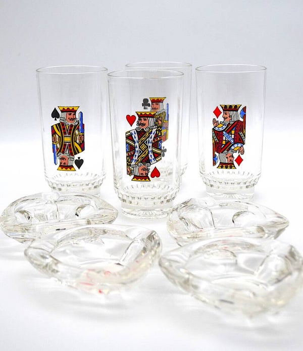 Bring timeless style and vintage flair to your home bar with this Mid-Century Modern Unique Set of 4 Casino Poker Drinking Glasses and Ashtrays.