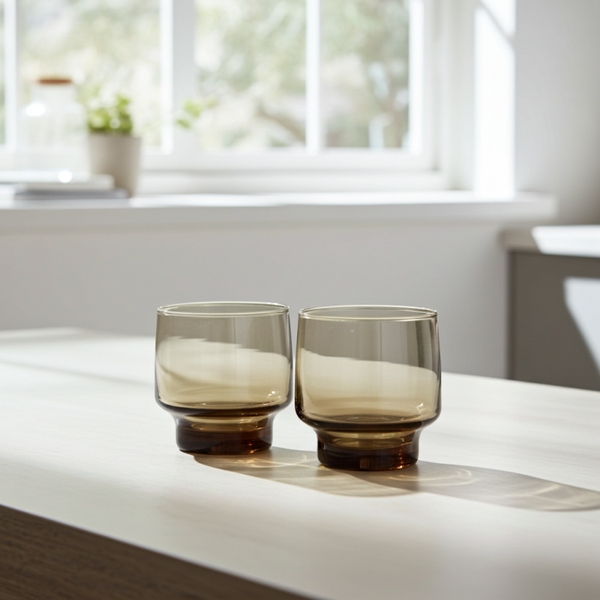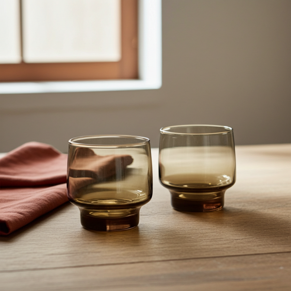 Everyday Luxury: Elevate your daily routine by using these vintage glasses for everyday drinks like iced tea or fresh fruit juice. Their smoky hue makes even casual moments feel special.
