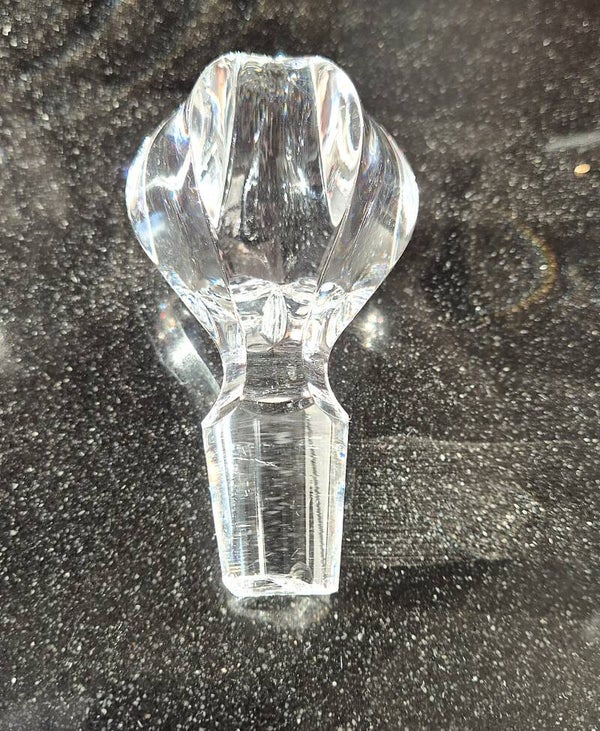 The decanter’s original crystal topper has a small chip on the underside (visible in the photos). Fortunately, this flaw does not affect usability—the stopper still fits securely and the decanter functions exactly as intended. Many collectors even appreciate minor wear as part of the piece’s vintage authenticity.