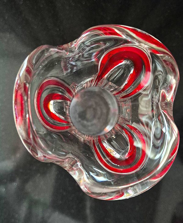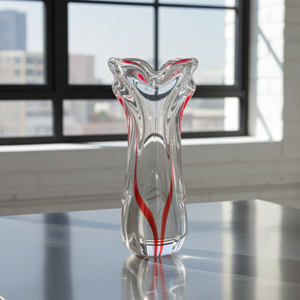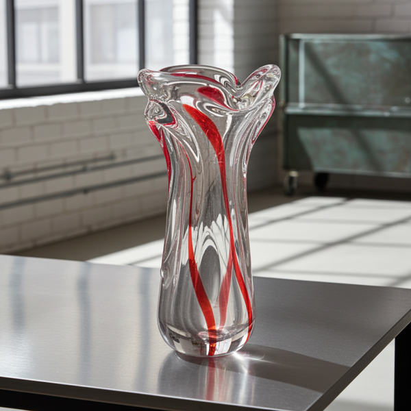 Vintage Murano-Style Swung Glass Vase | Red & Clear Art Glass | TheyUnique