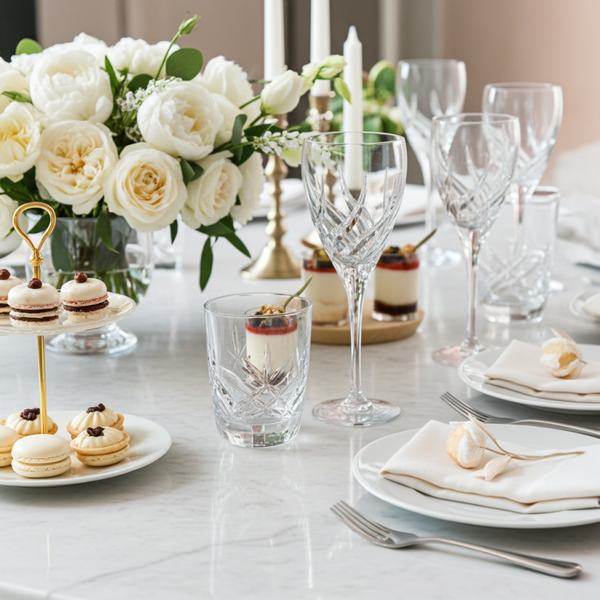 Display alongside a decanter, coasters, and small bowls of snacks for a refined, ready-to-serve look.