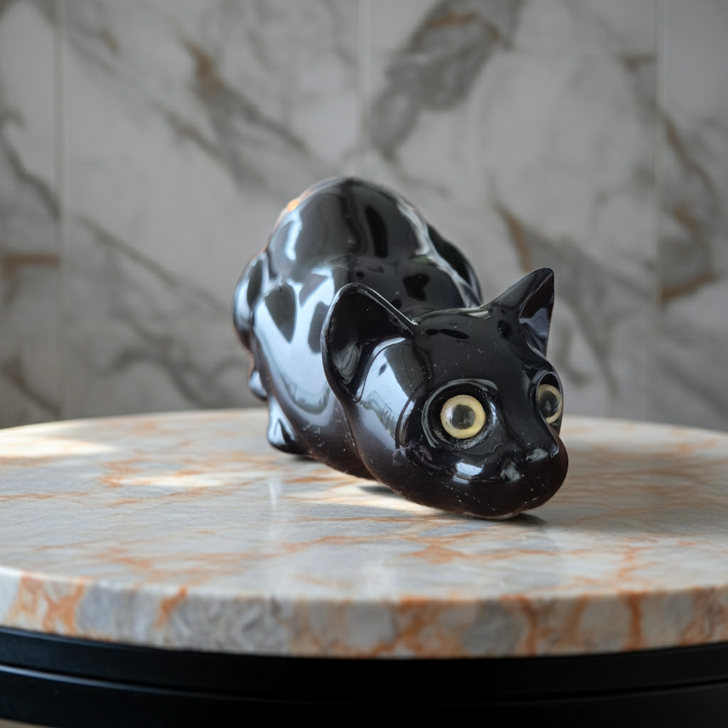 Add character, charm, and a touch of mystery to your interior with this Vintage “Vaga International” Black Ceramic Cat Figurine, a beautifully crafted decorative piece full of personality. With its sleek black glaze and striking yellow eyes, this cat figurine captures attention instantly while remaining elegant and timeless.