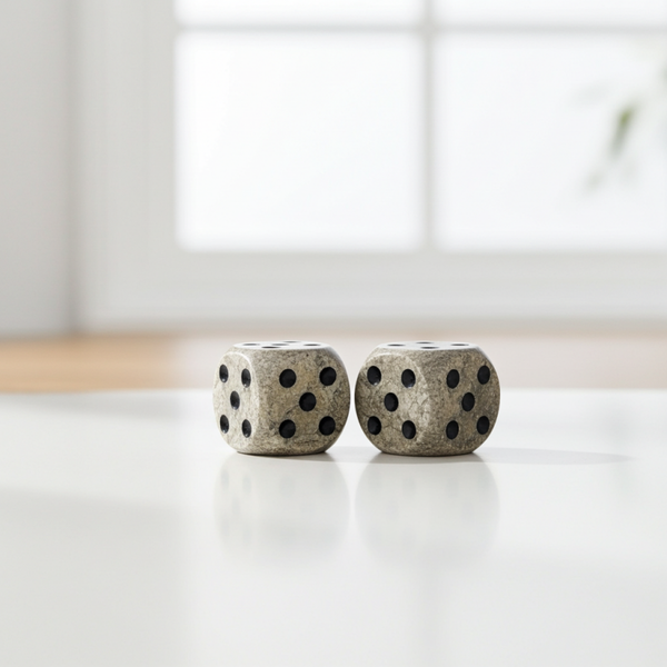 Each dice features a beautifully aged surface, making them perfect as decorative accents rather than functional game pieces. Their solid weight and tactile stone texture give them a grounded, architectural presence that elevates shelves, coffee tables, and curated vignettes.