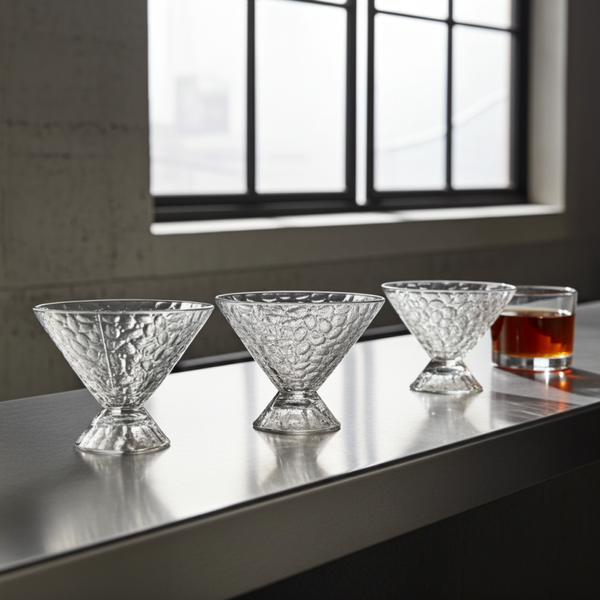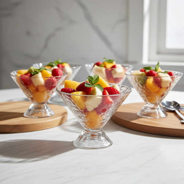 The set includes 6 glasses, each with a delicate frosted surface that exudes timeless beauty and elegance. They are ideal for serving a variety of frozen desserts, ice cream sundaes, or classic martinis, offering your guests a delightful touch of French luxury. Whether used for casual meals or formal gatherings, these glasses will infuse your table with retro chic.