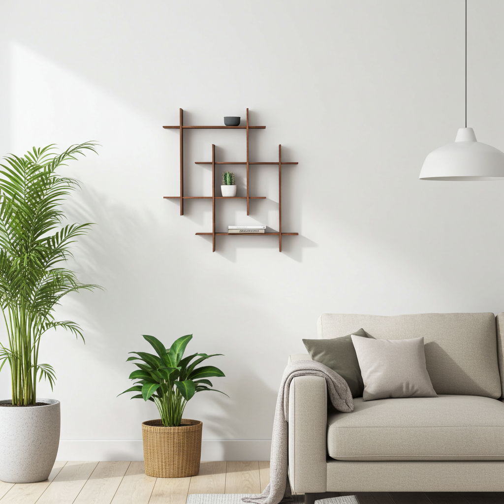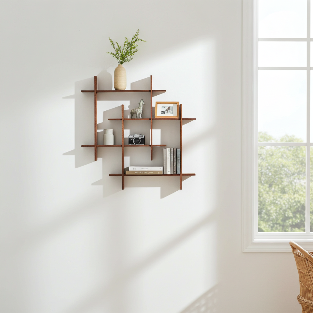 Keep styling minimal to highlight the shelf’s architectural form