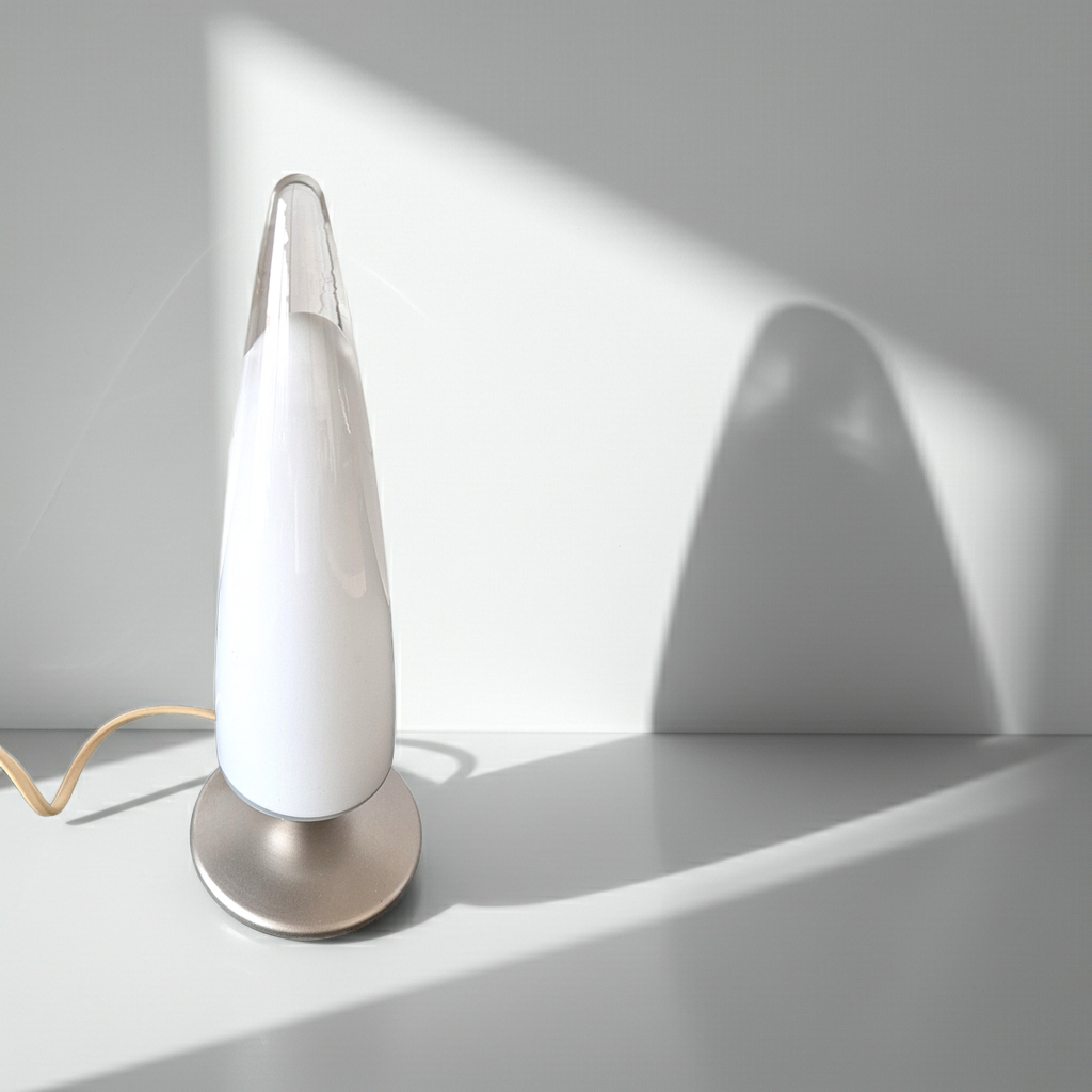 This iconic postmodern table lamp by Massive captures the bold design language of the 1980s. Featuring a distinctive cone-shaped silhouette, the lamp combines sculptural form with functional lighting, making it both a practical object and a statement piece.