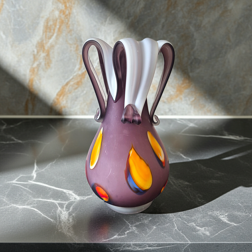 Perfect for lovers of Italian design and collectible art glass, this Murano vase brings sophistication, color, and character to both modern and classic interiors.