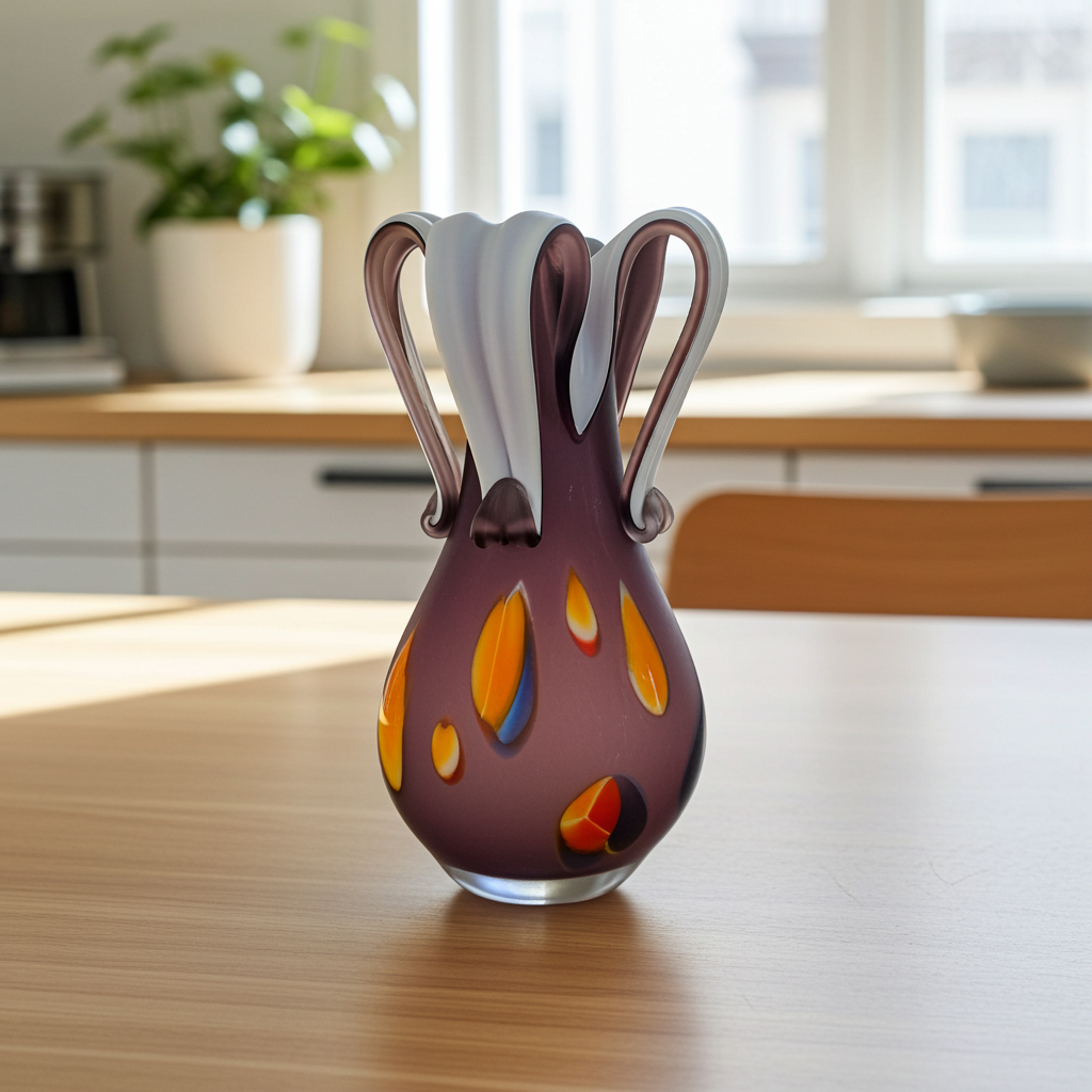 Hand-Blown Murano Purple Art Glass Vase – Italian Design - Sculptural