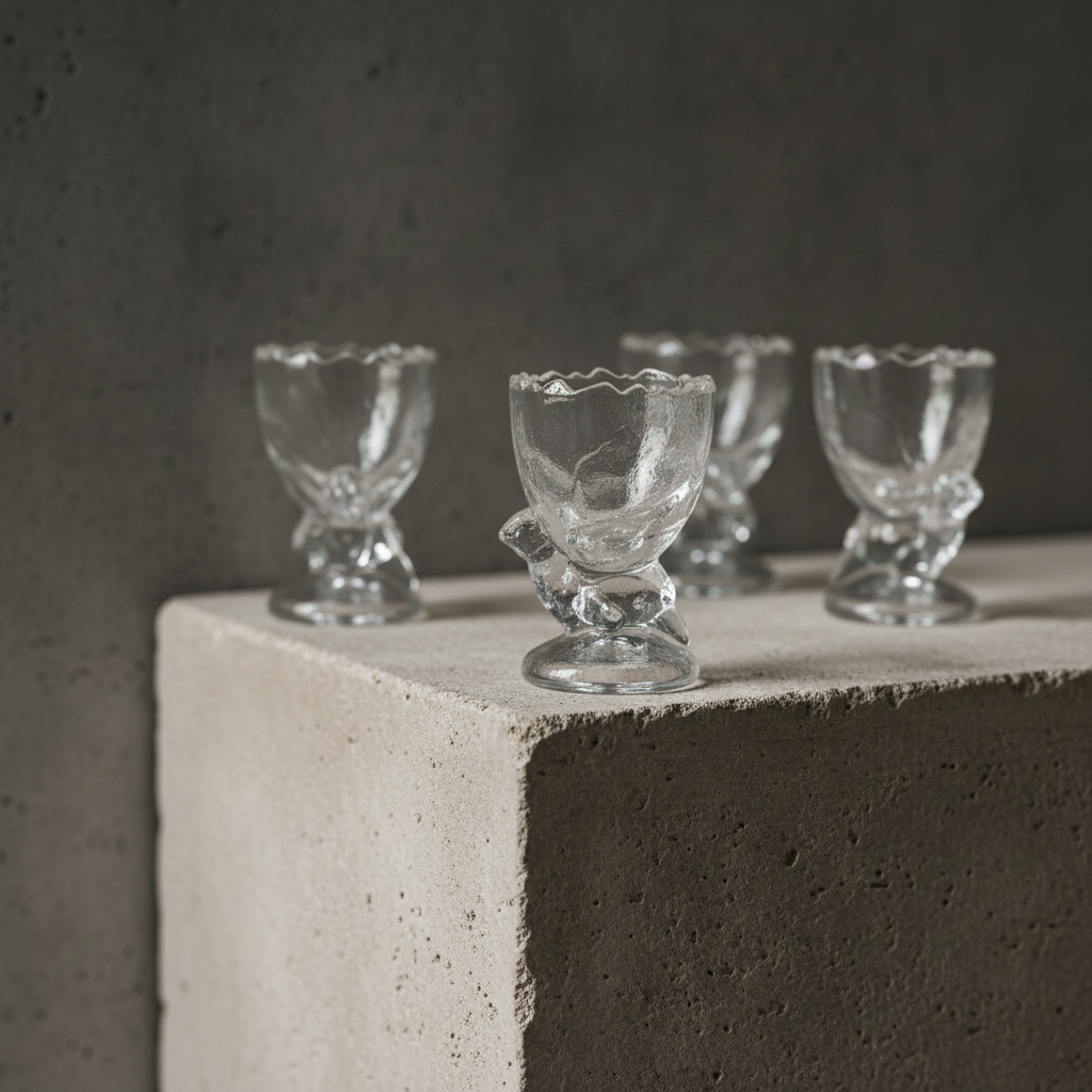 Vintage Frosted Glass Chicken Egg Cups – Set of 4, 1990s | TheyUnique
