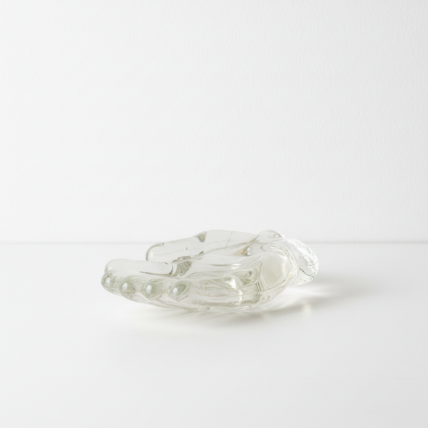 Originally designed as a glass ashtray, it can also be used as a catchall dish for jewelry, keys, or small objects, or even as a tealight candle holder to create a warm ambient glow. The hand-shaped design reflects the playful and expressive decorative styles popular in the 1970s.