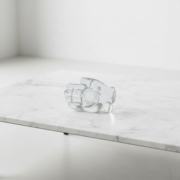 This distinctive vintage clear glass hand dish from the 1970s is both a decorative object and a versatile small tray. Sculpted in the shape of an open hand, the piece beautifully captures light through its transparent glass surface, giving it an elegant and slightly artistic appearance.