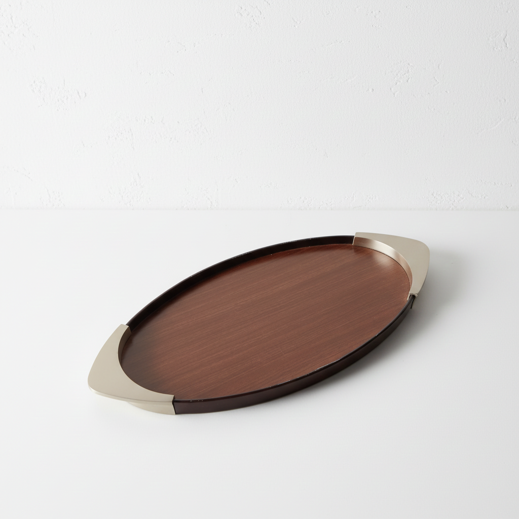 Design: Elegant elongated shape with metal serving surface
