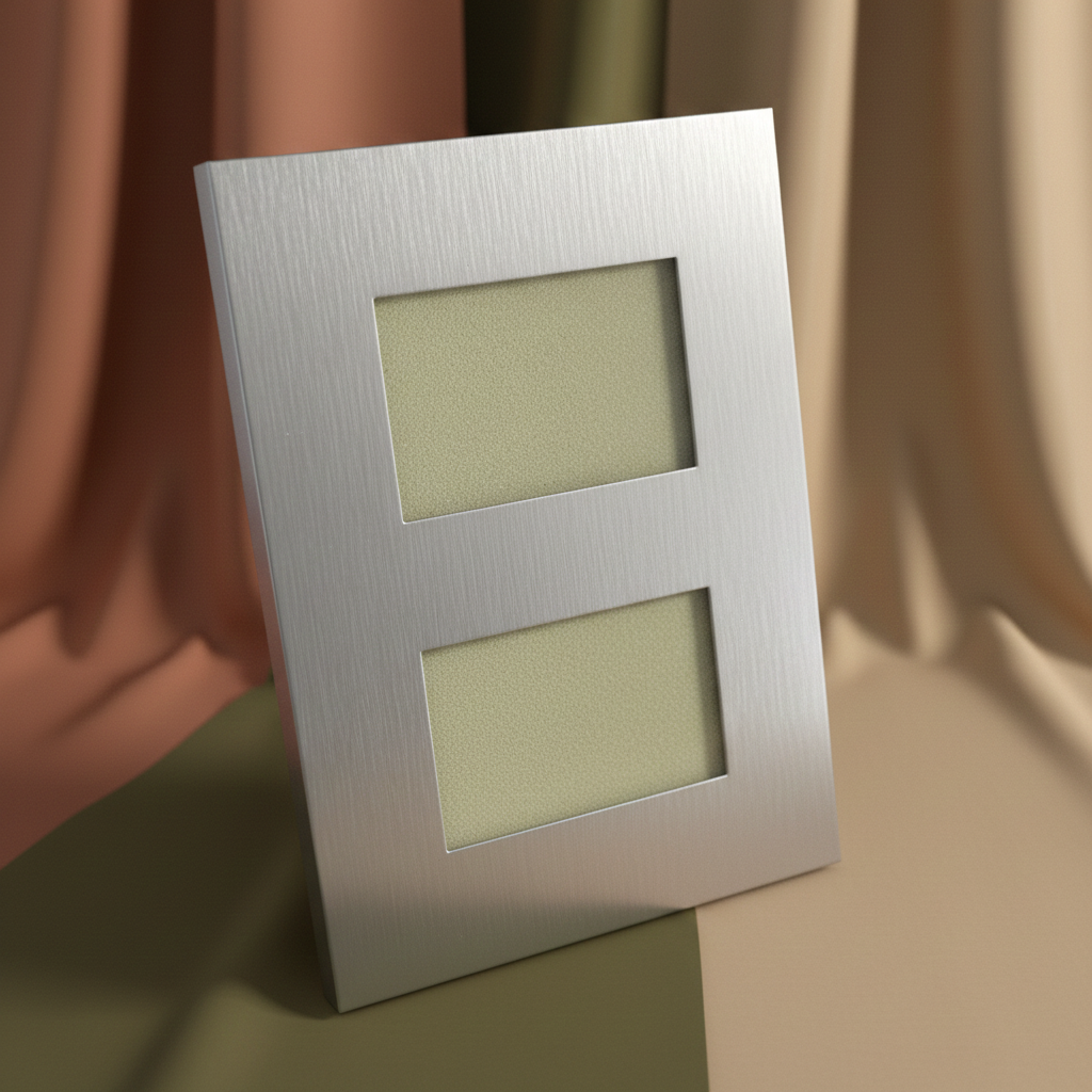 Mid-Century Modern Brushed Stainless Steel Double Photo Frame | Minimalist Design | TheyUnique